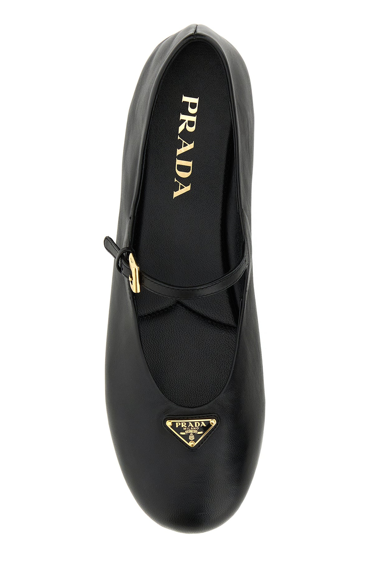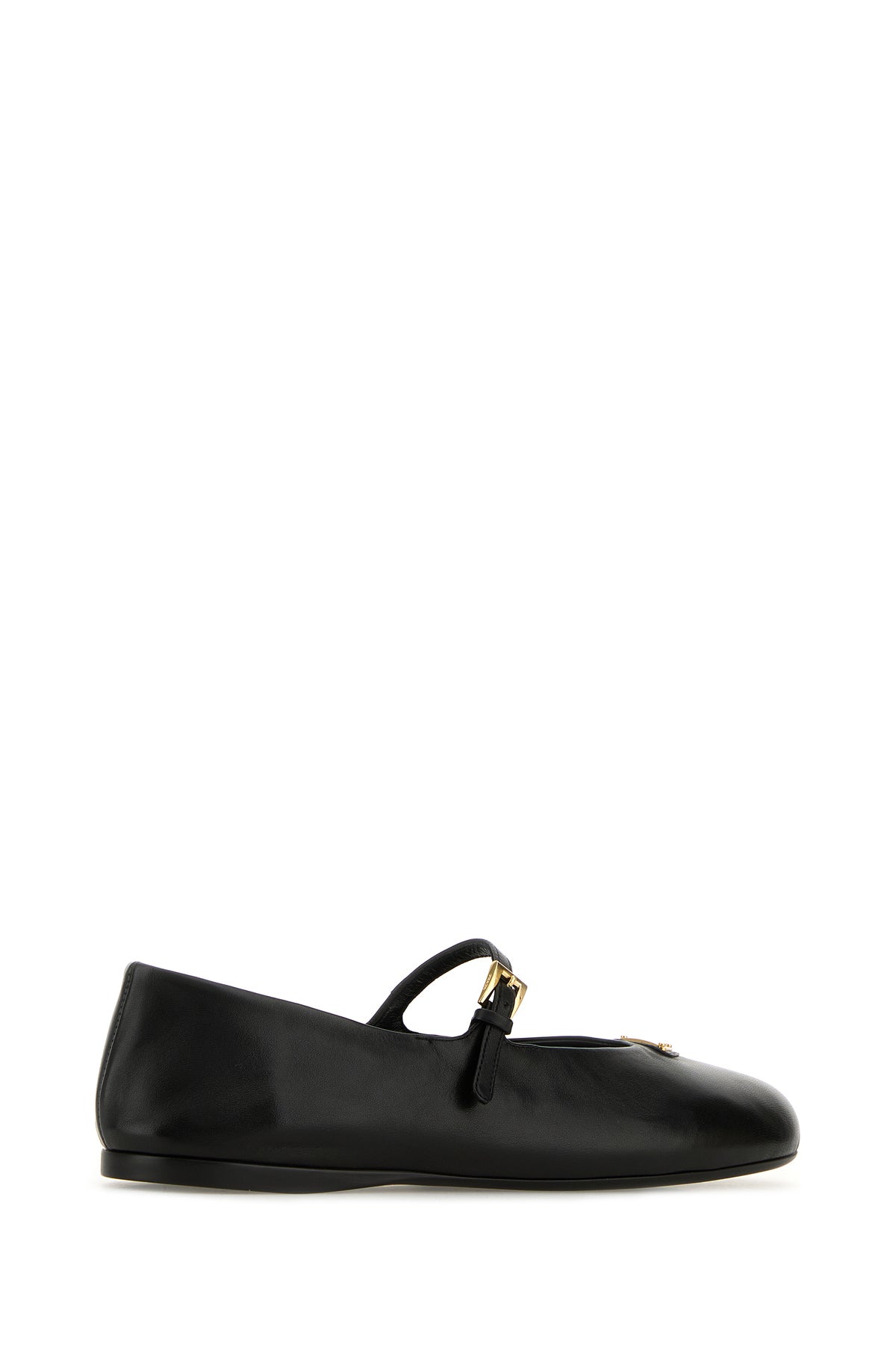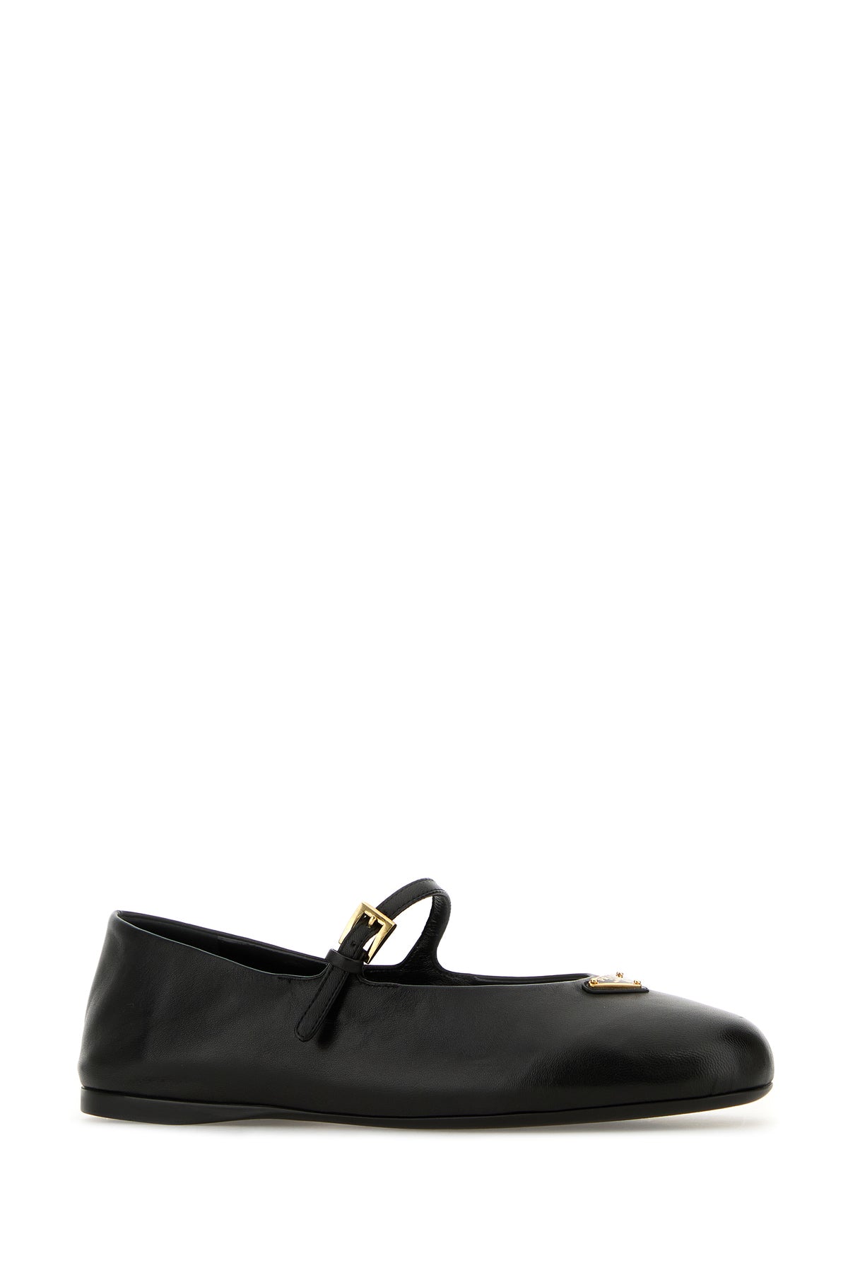 Ballerine realizzate in nappa arricchite da iconico triangolo metallico logato sulla parte frontale.