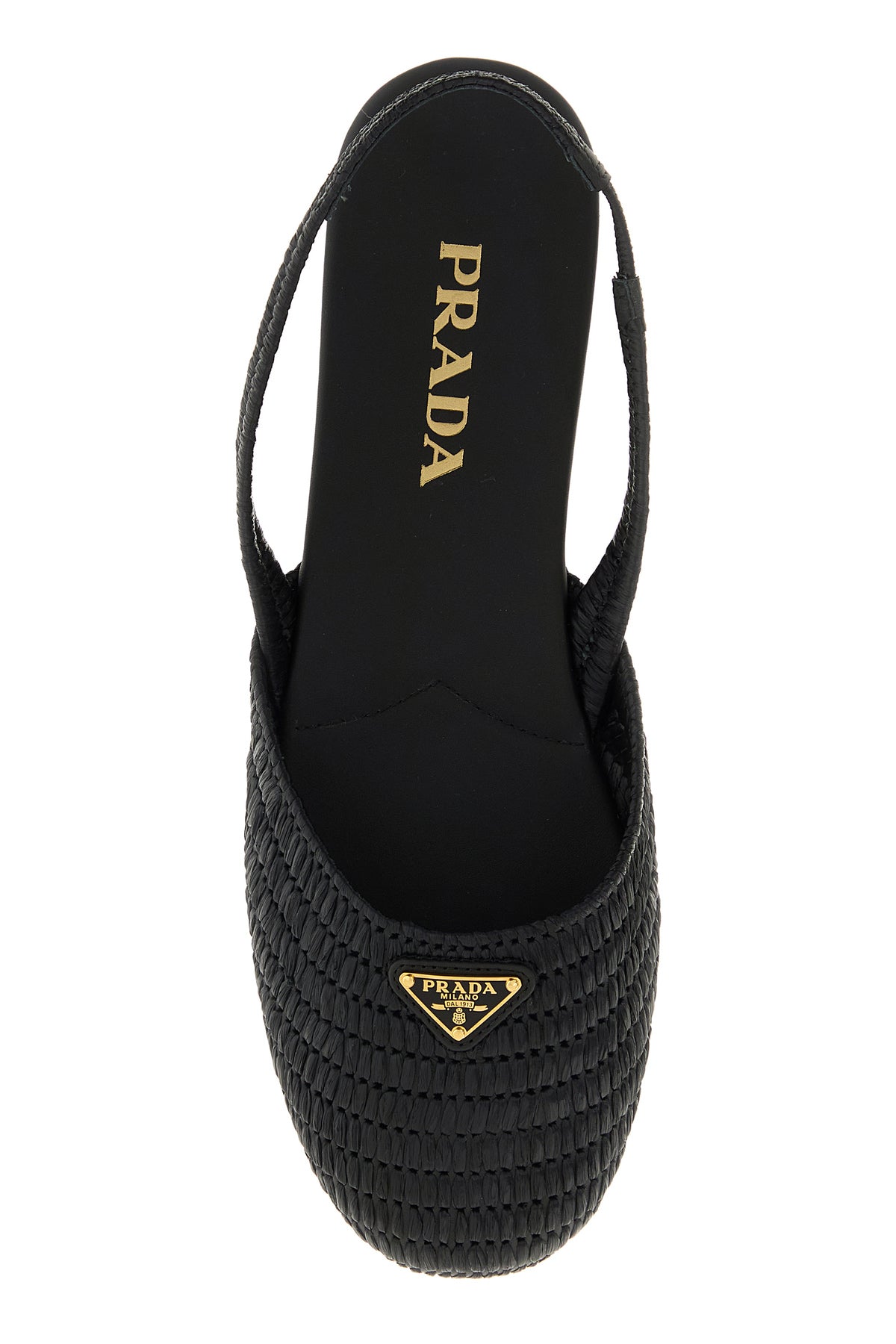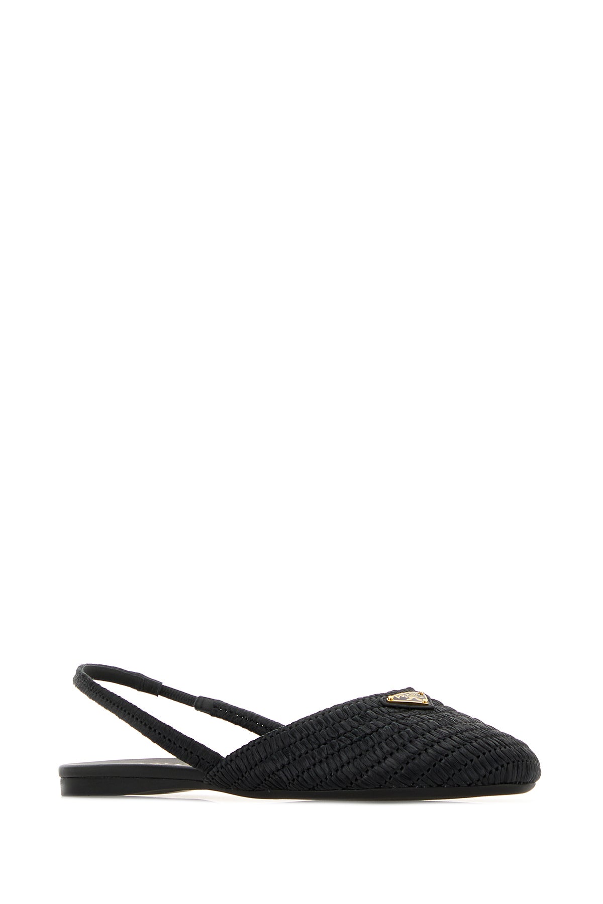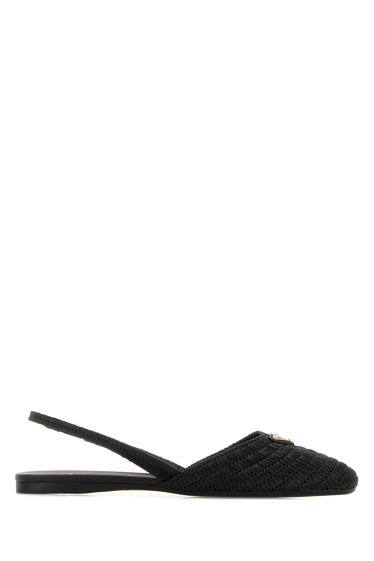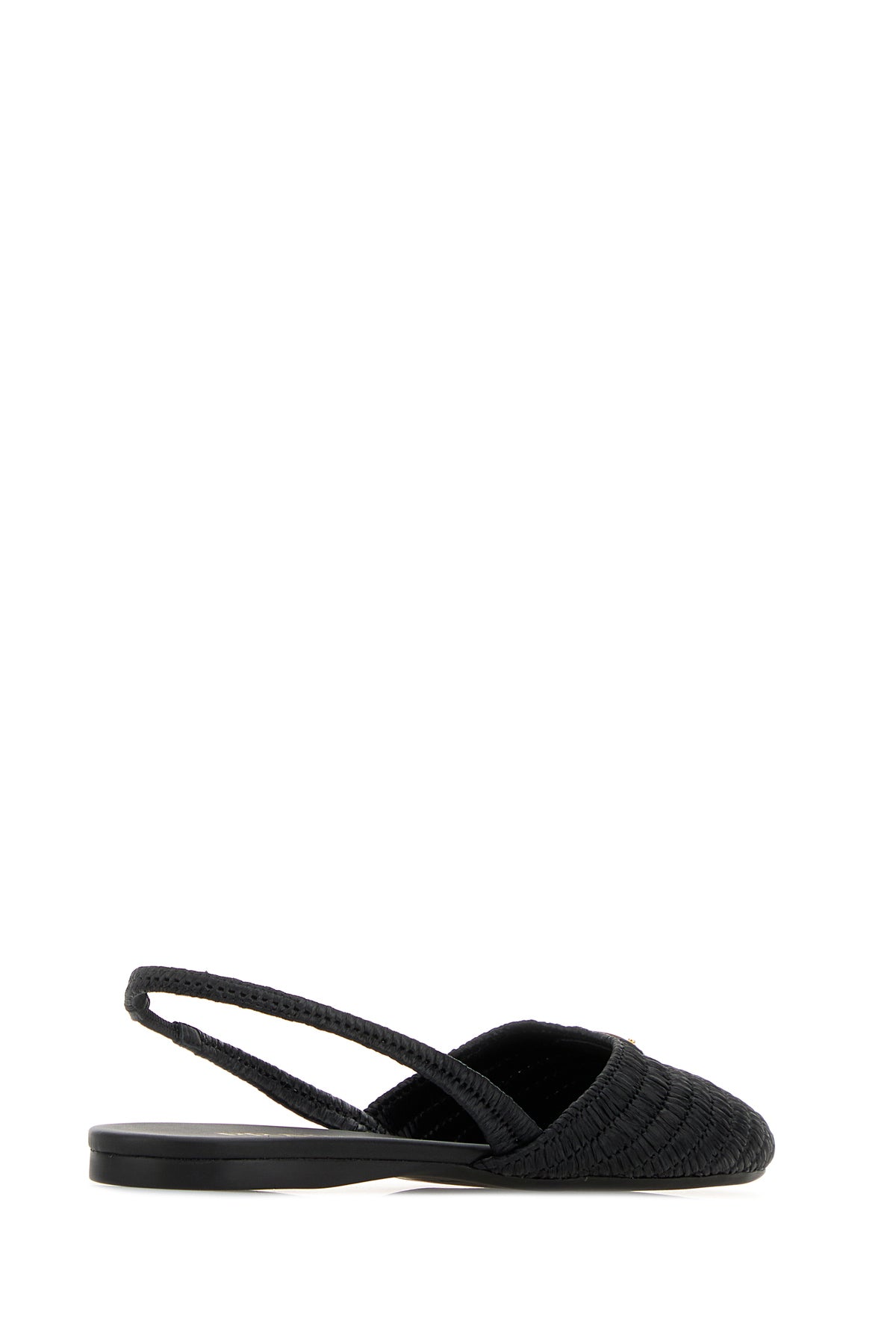 Ballerine slingback realizzate in rafia arricchite da iconico triangolo metallico logato sul collo de piede.