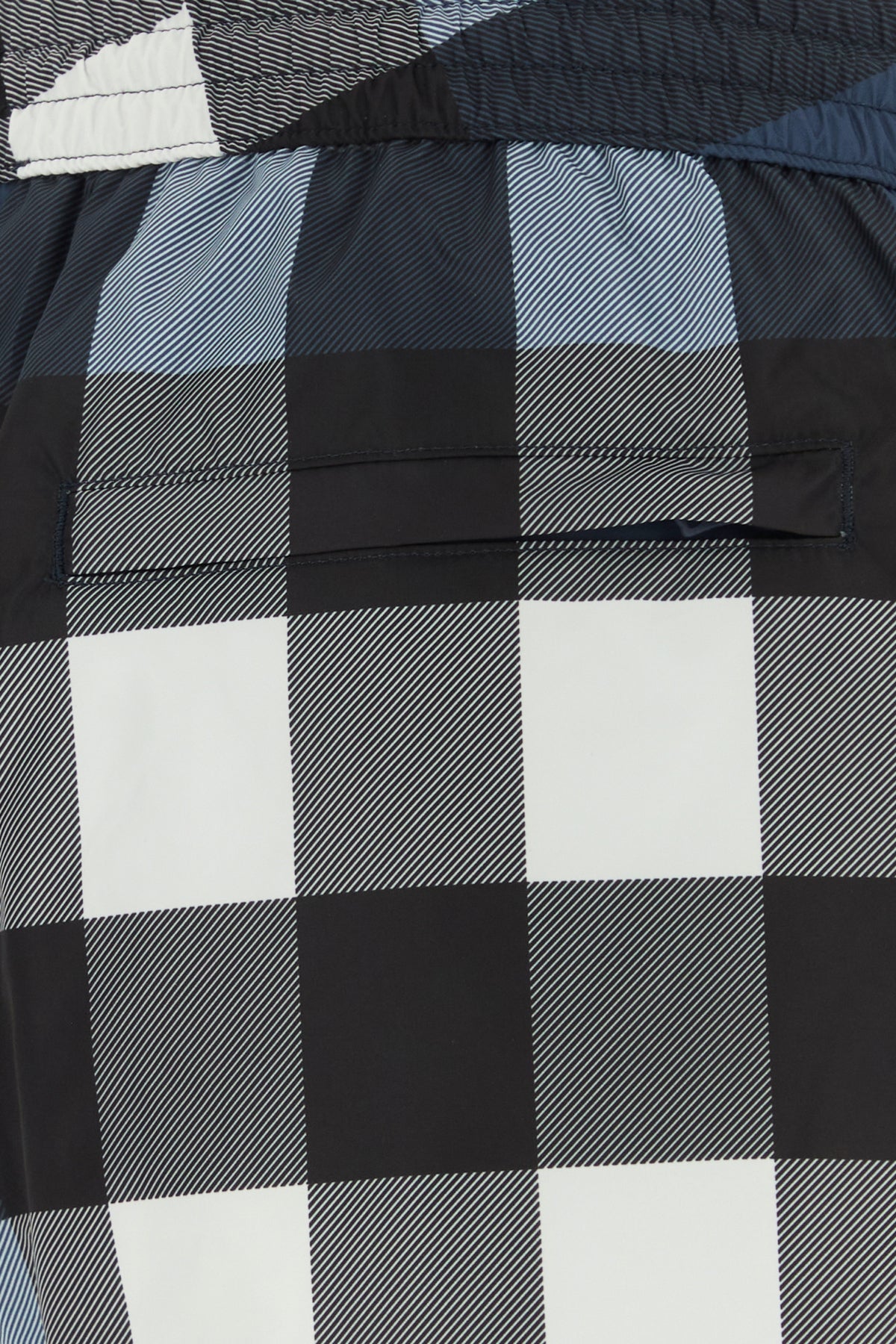 Bermuda mare realizzata in poliestere caratterizzato da stampa Burberry Check su tutta la superficie.