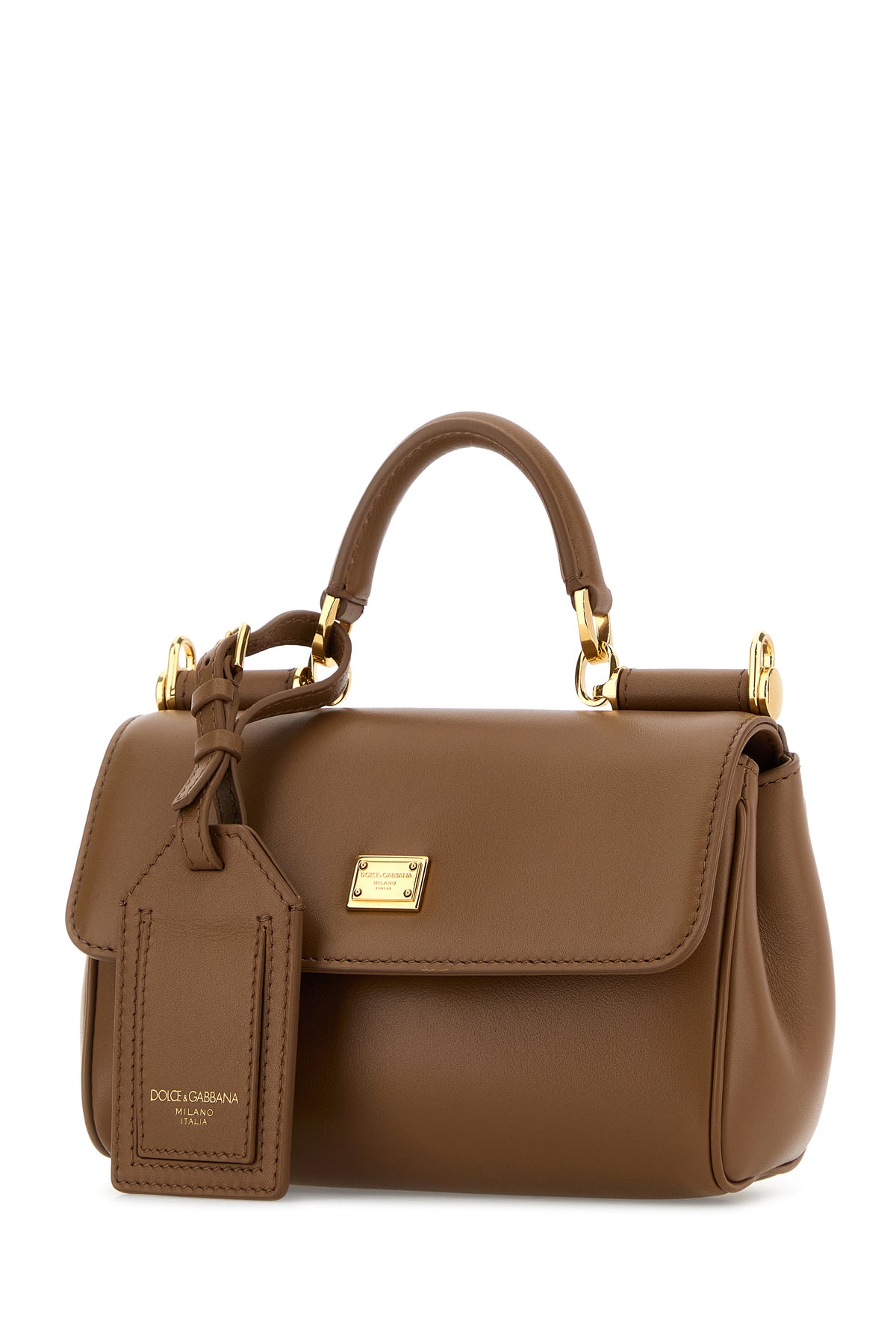 Borsa a mano realizzata in pelle di vitello caratterizzata da logo stampato laminato sul retro arricchita da targhetta metallica logata sulla parte frontale.