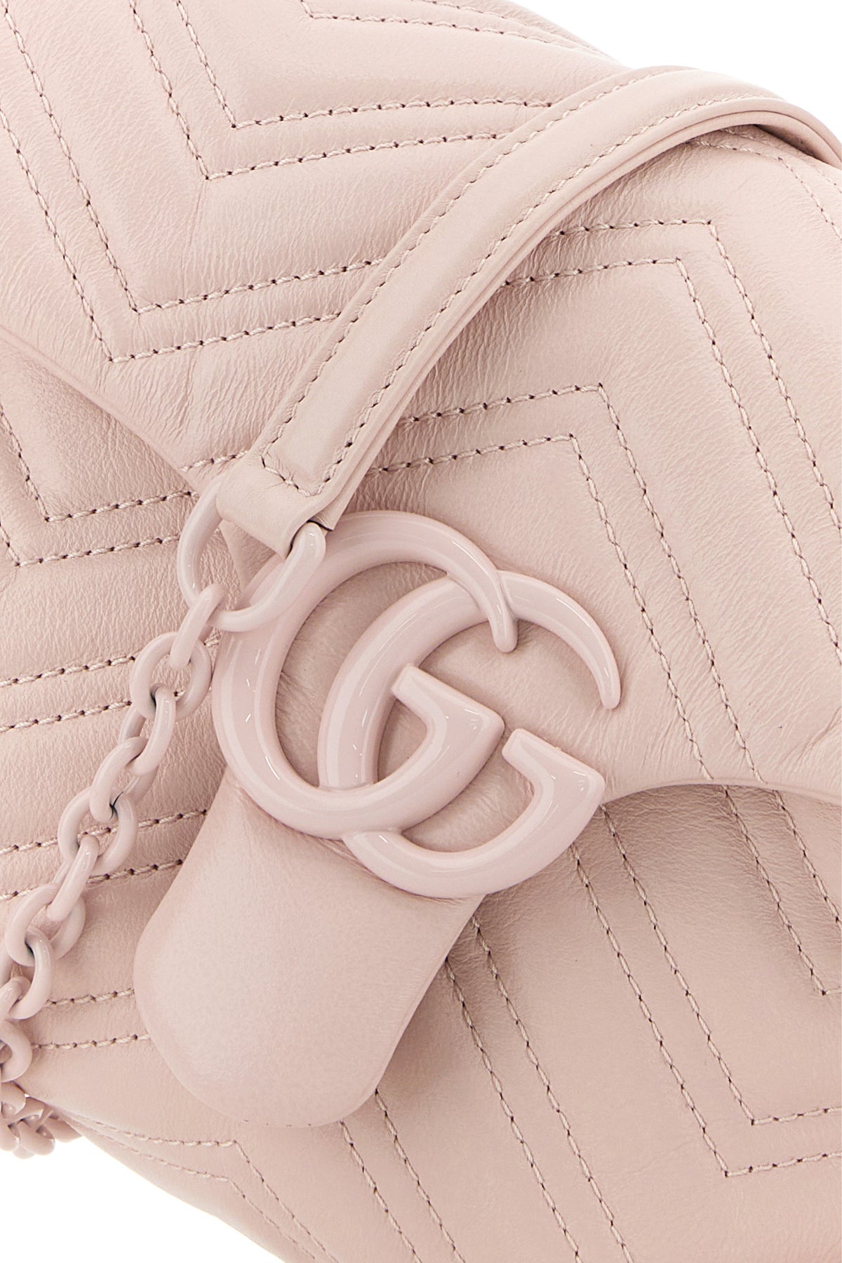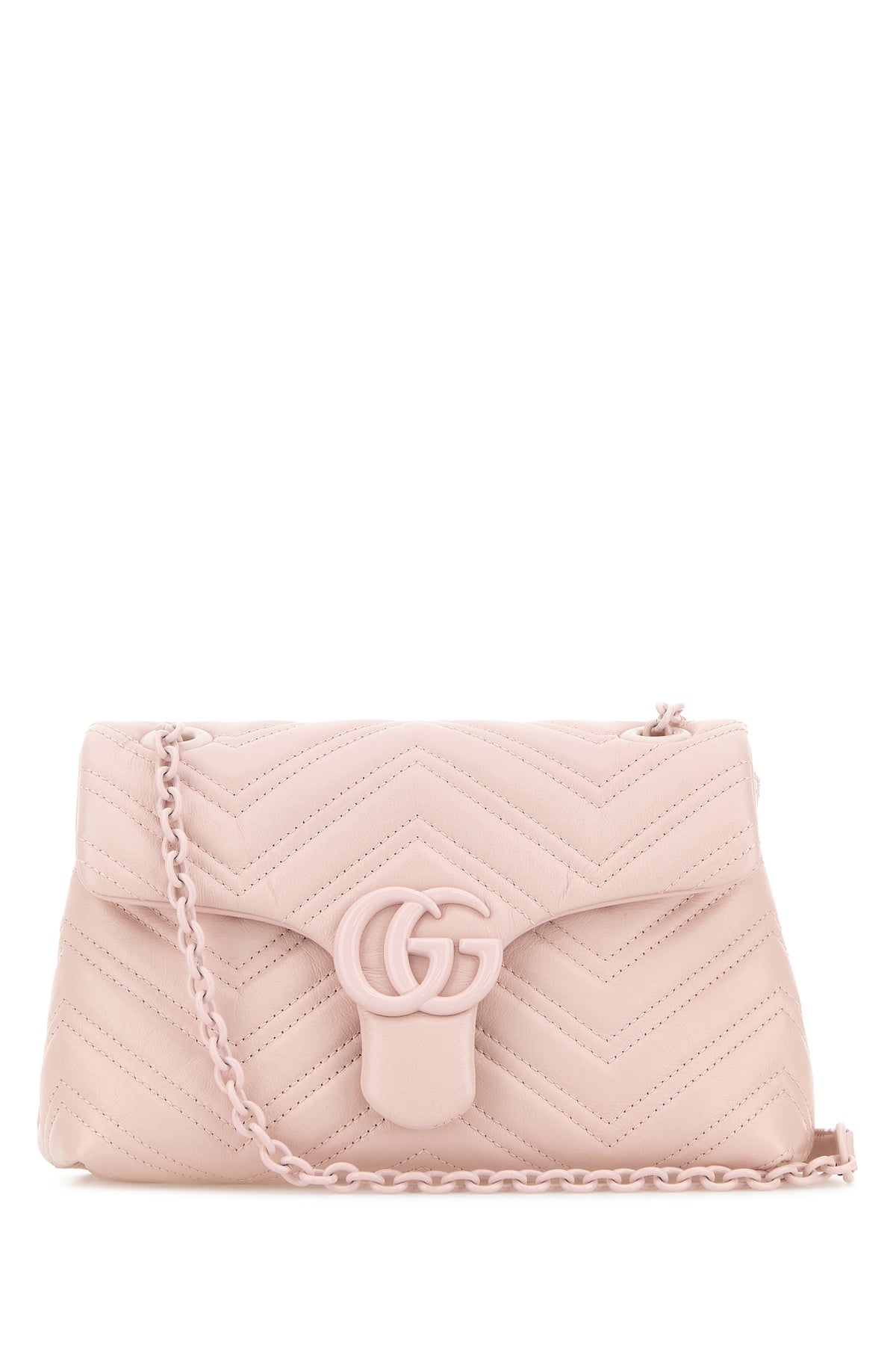 Borsa a spalla realizzata in nappa impressa a motivo chevron arricchita da dettaglio metallico Doppia G sulla parte frontale.