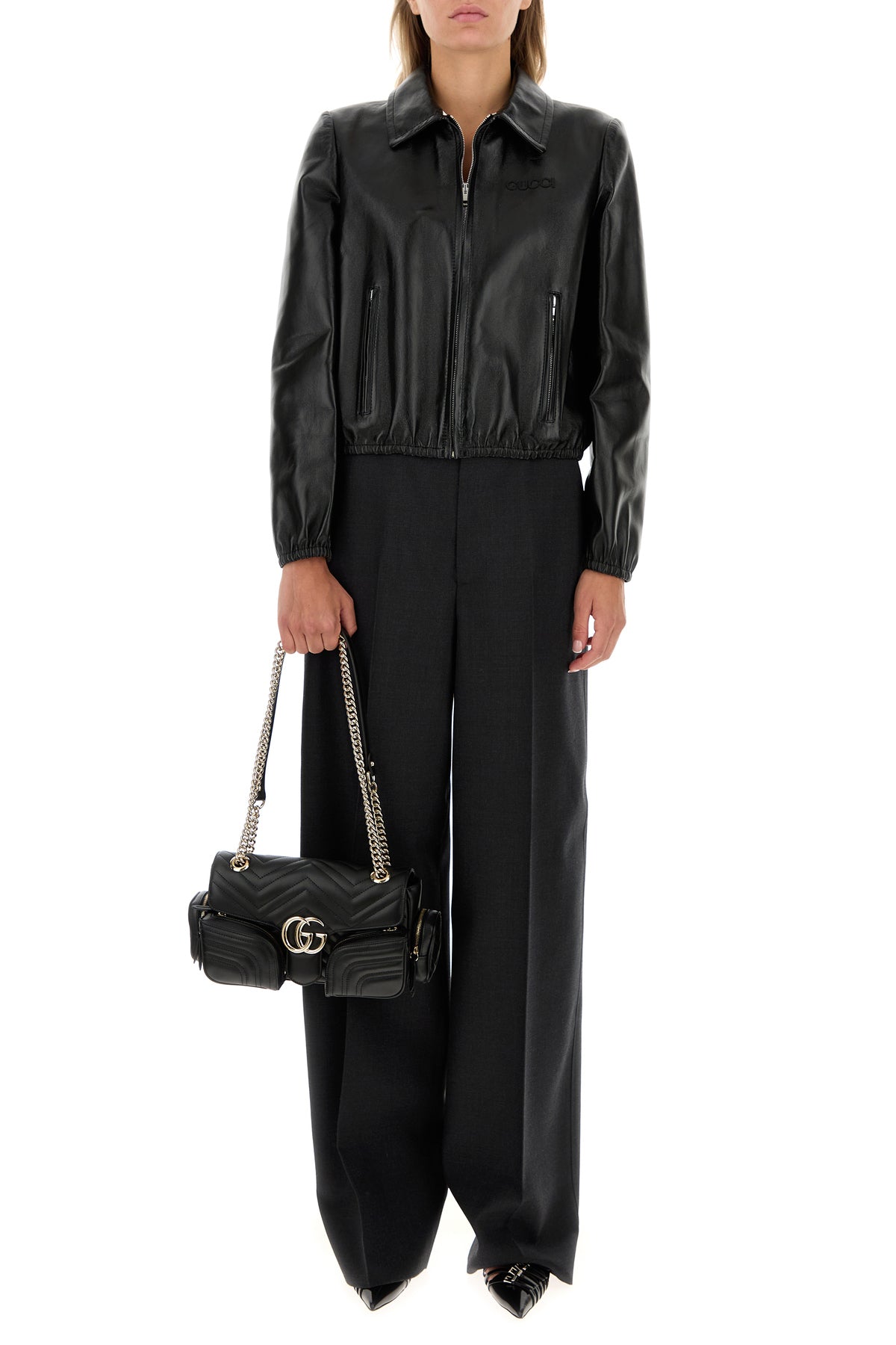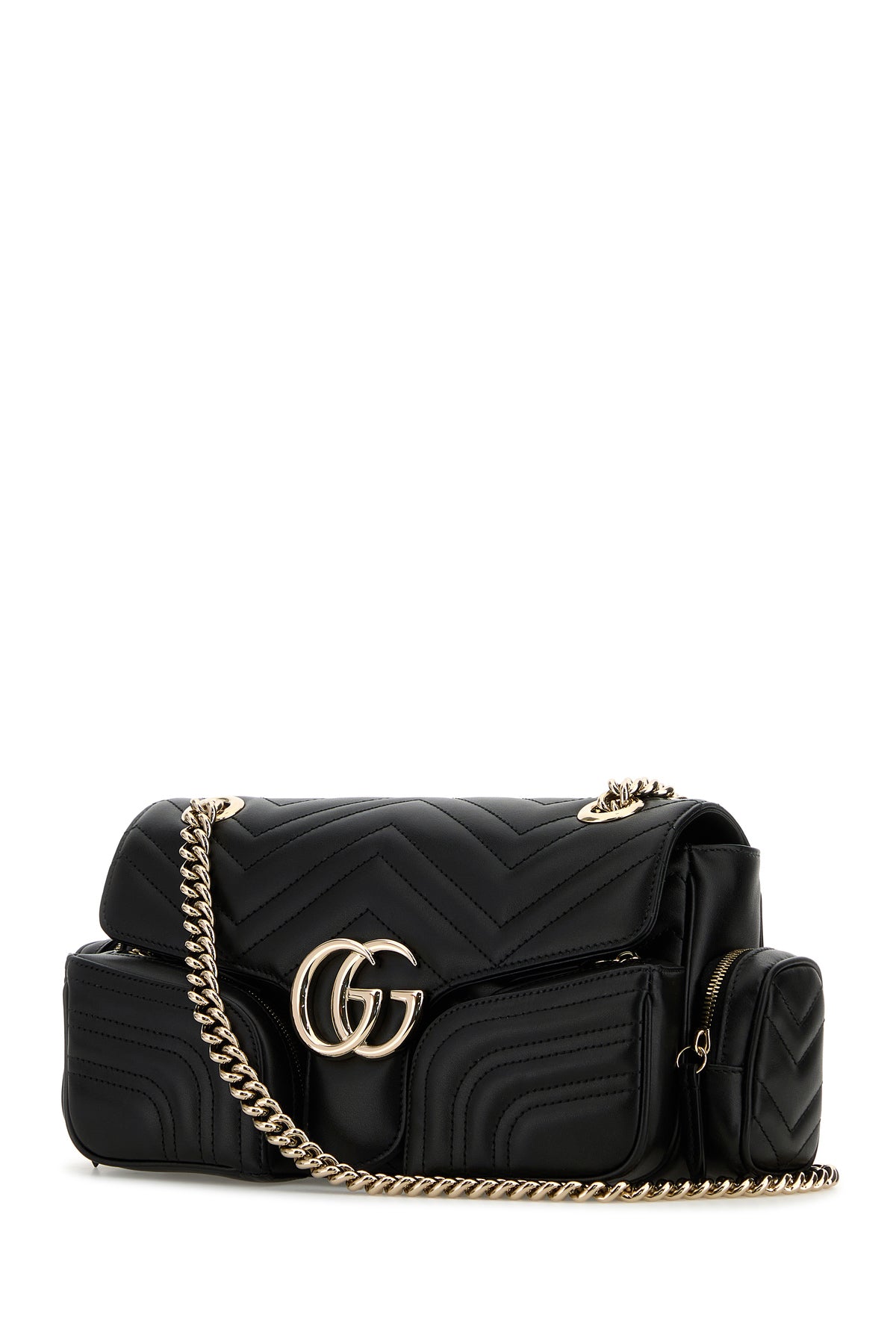 Borsa a spalla realizzata in pelle martellata a motivo chevron arricchita da dettaglio metallico GG sulla parte frontale.