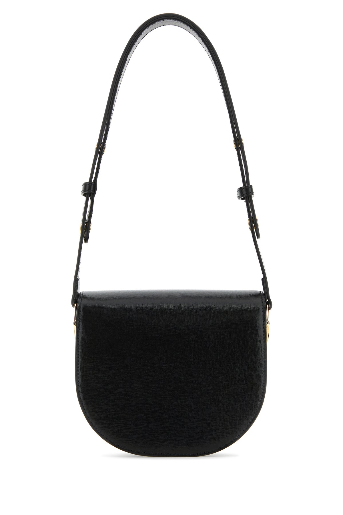 Borsa a spalla realizzata in pelle zigrinata arricchita da dettaglio metallico Morsetto sulla parte frontale.