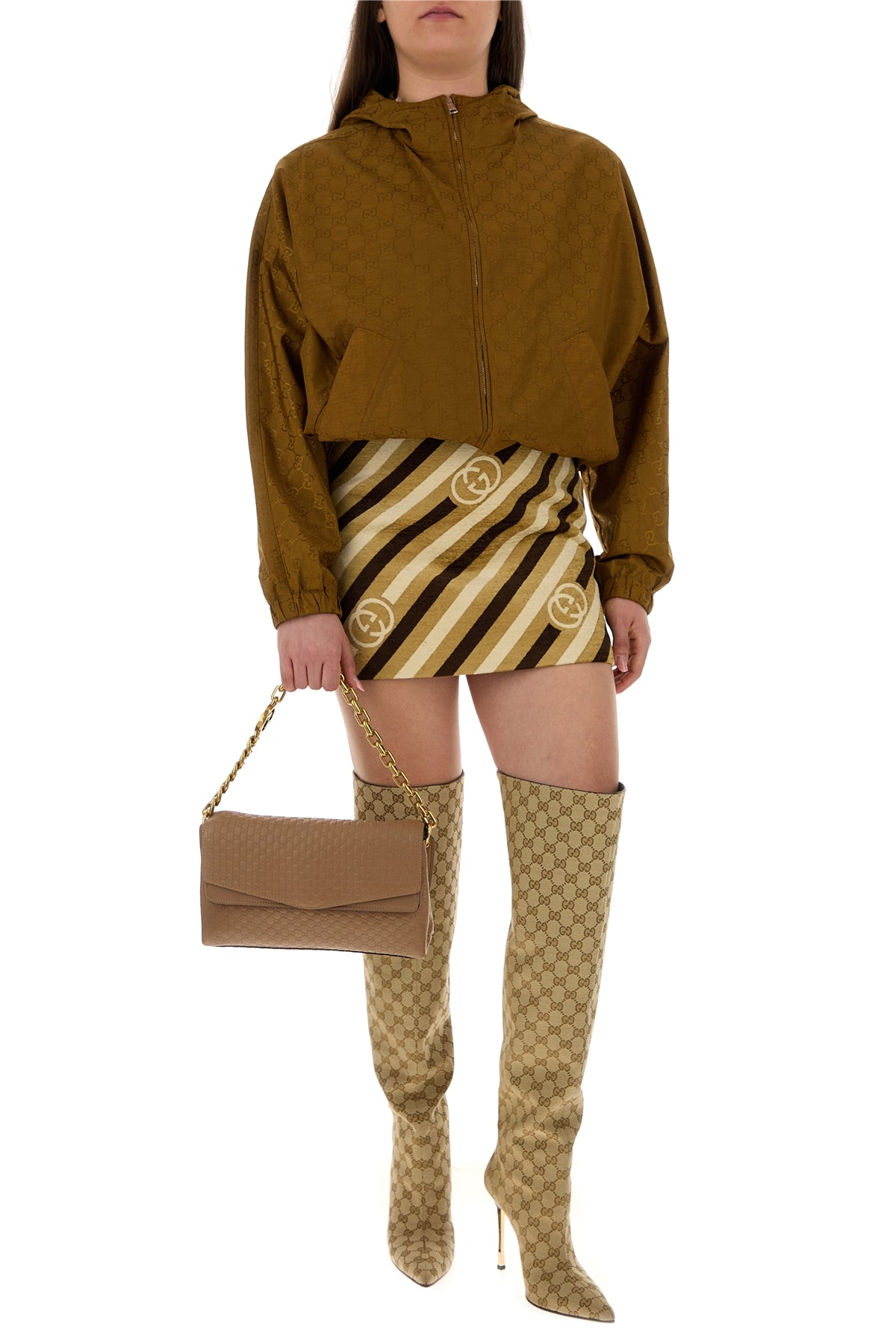 Borsa a spalla realizzata in pelle caratterizzata da motivo GG impresso su tutta la superficie.