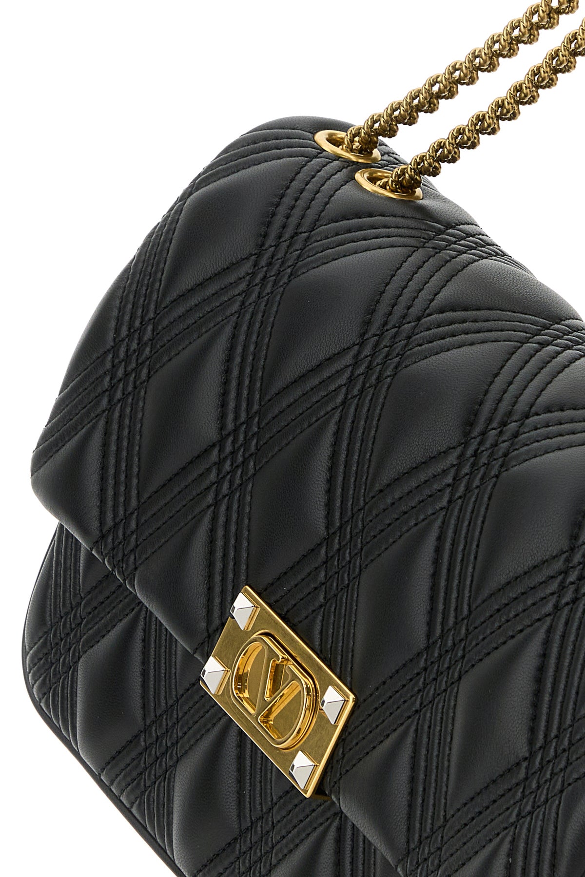 Borsa a spalla realizzata in nappa trapuntata arricchita da dettaglio metallico con borchie e VLogo sulla parte frontale.