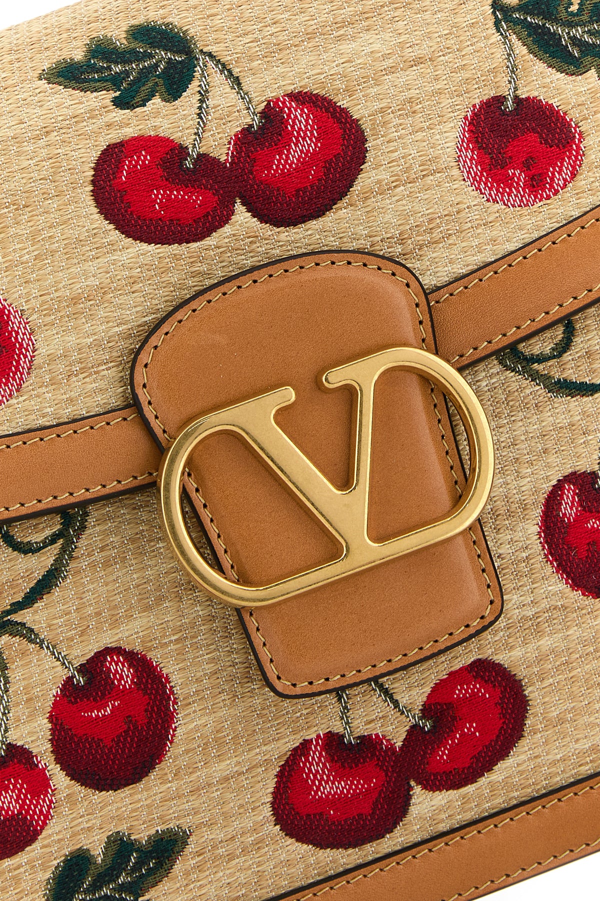 Borsa a tracolla realizzata in rafia caratterizzata da ricamo Cherryfic su tutta la superficie arricchita da dettaglio metallico VLogo Signature sulla parte frontale.