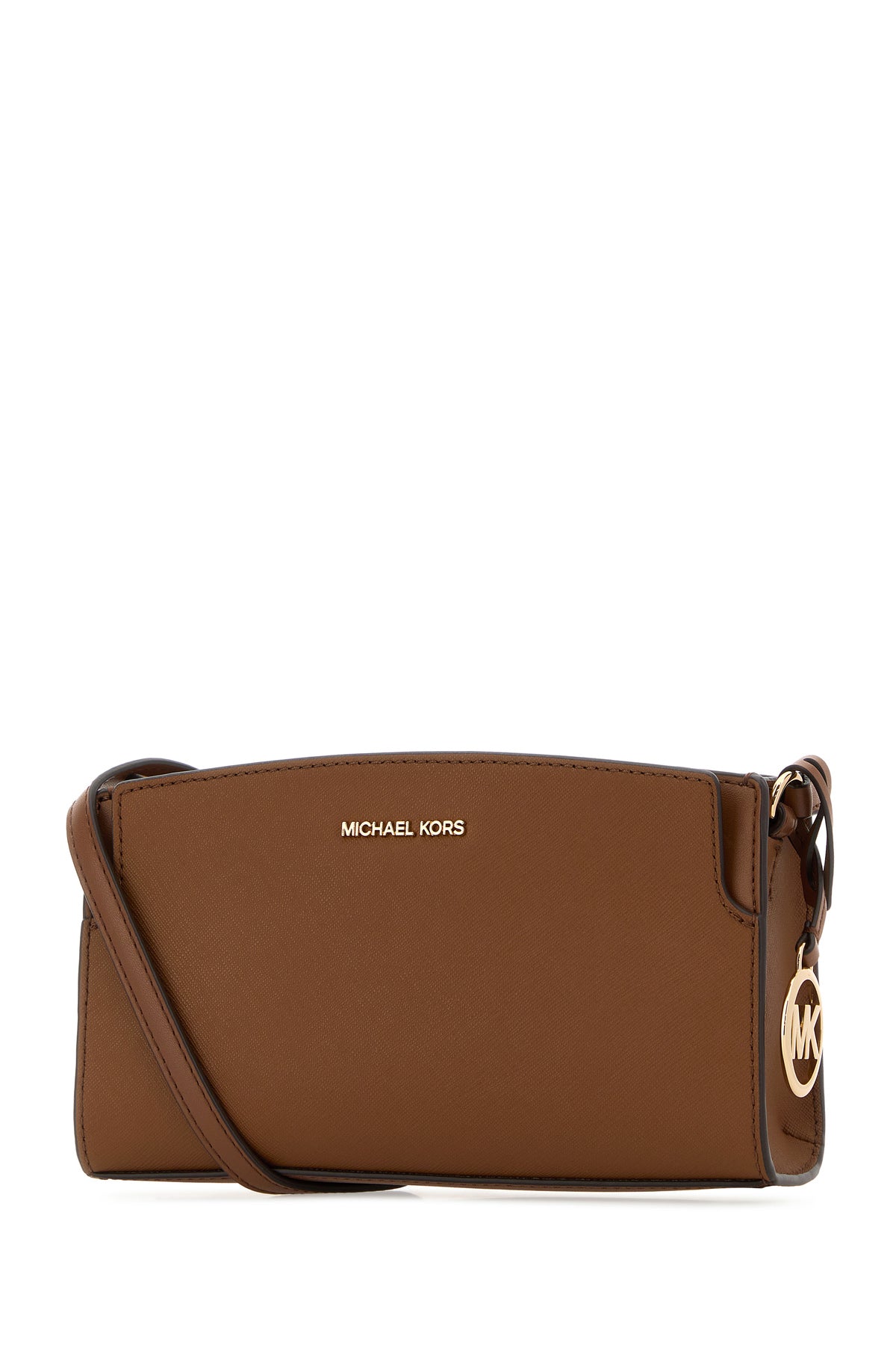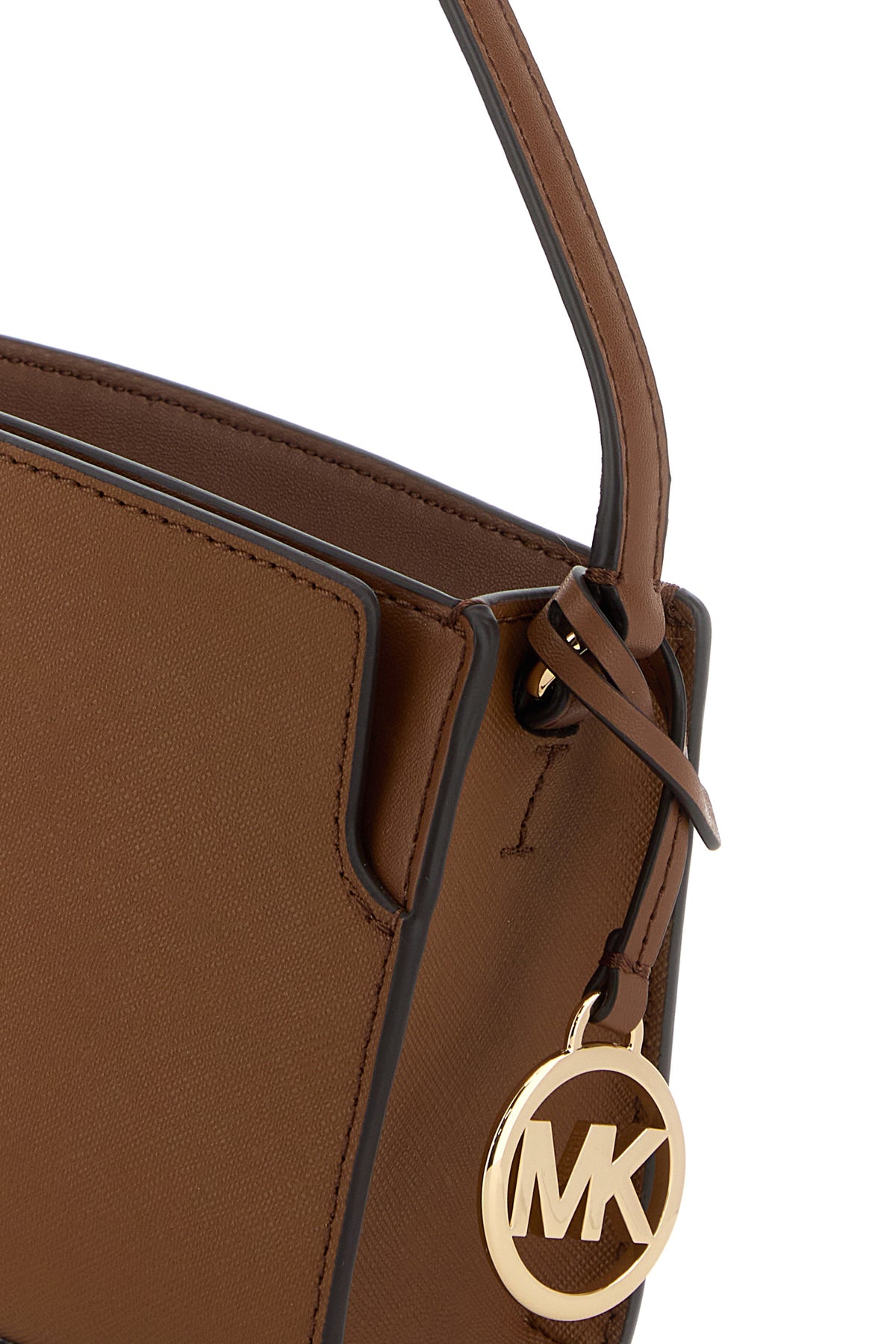 Borsa a tracolla realizzata in pelle zigrinata arricchita da logo in lettere metalliche sulla parte frontale.