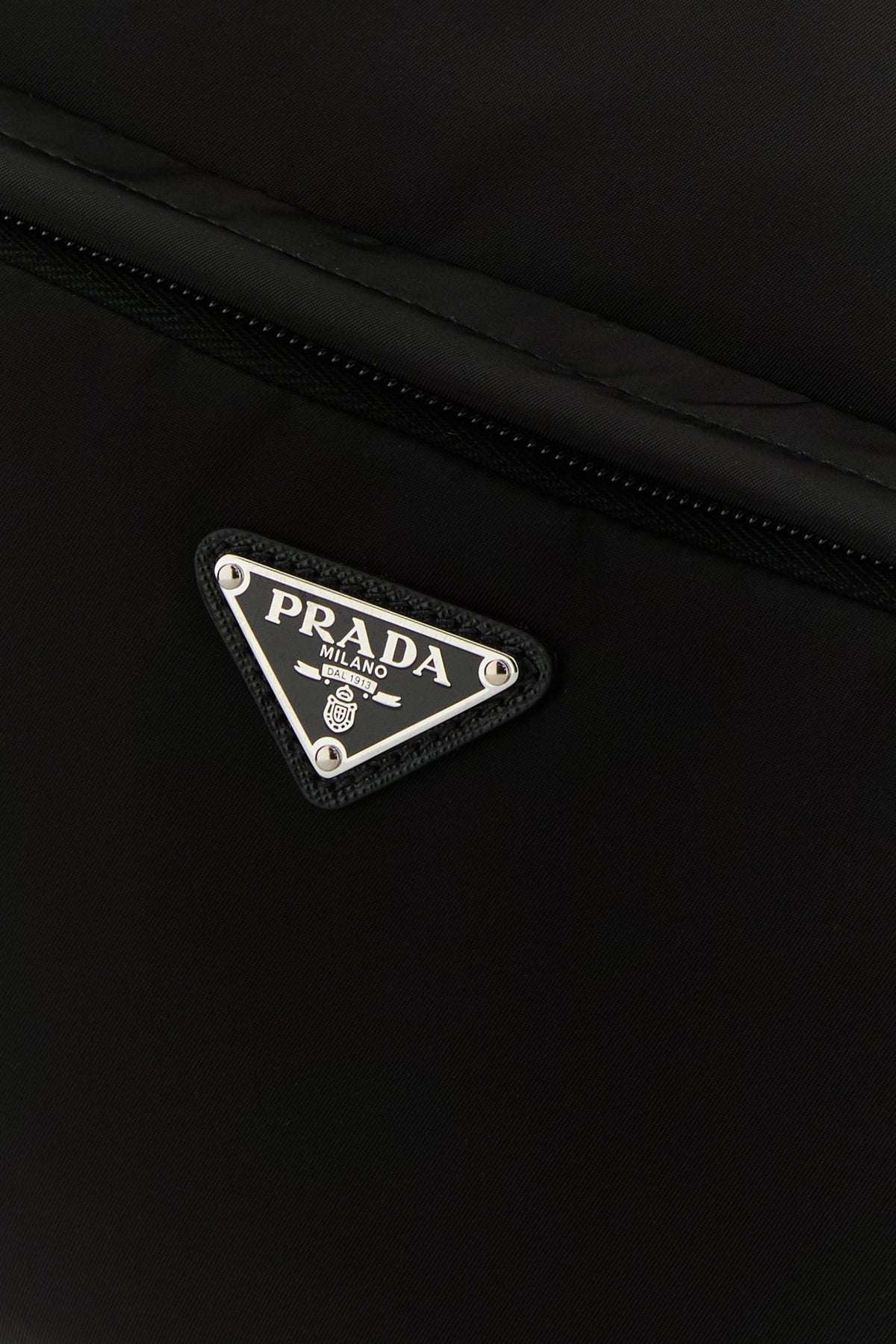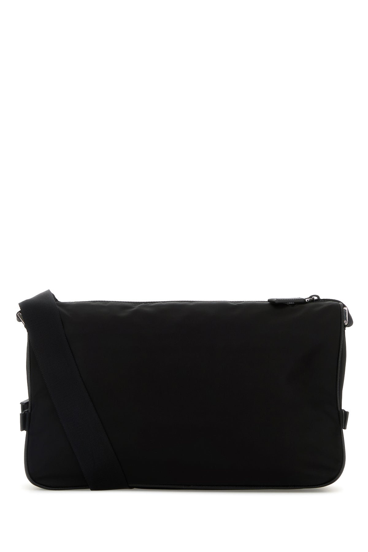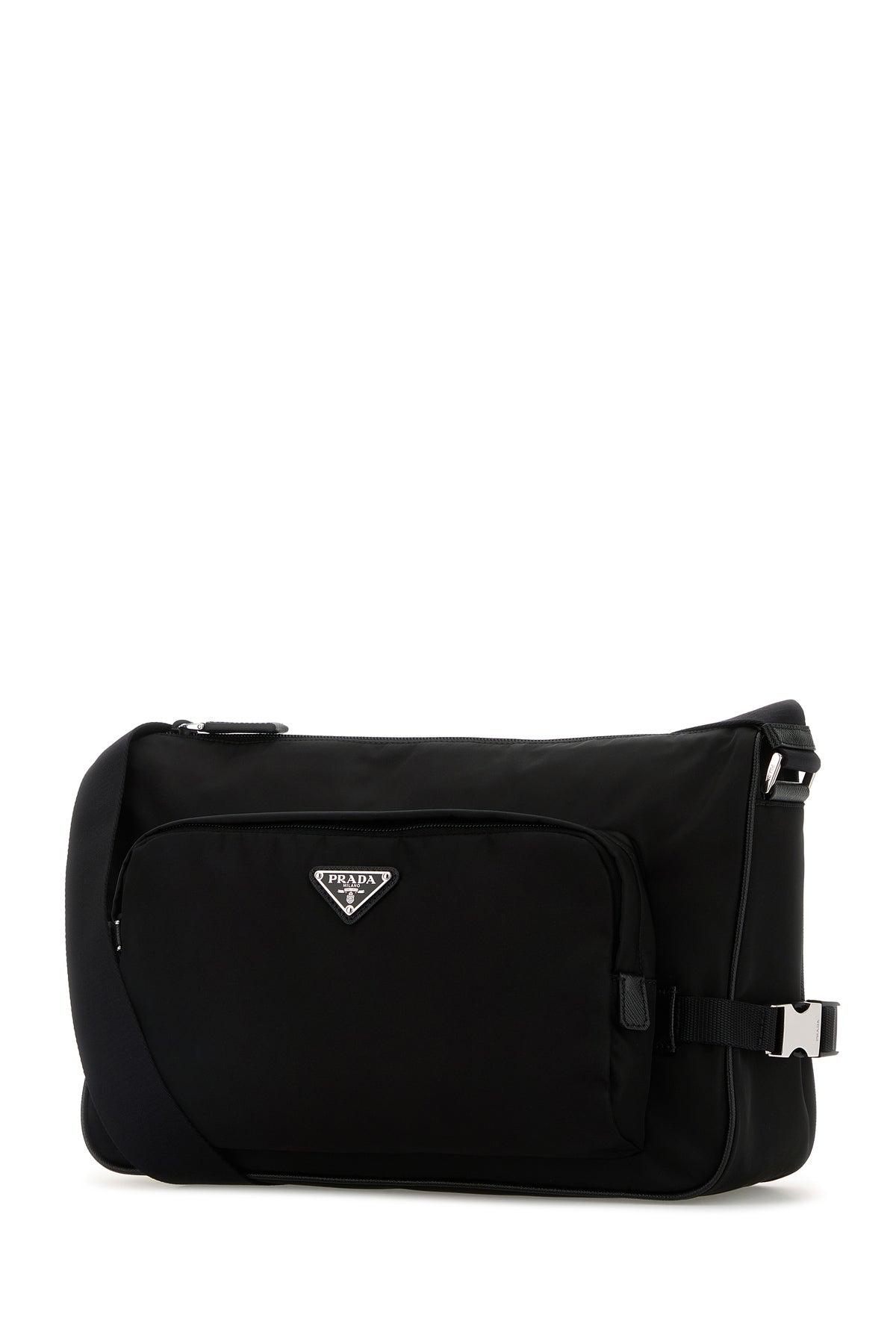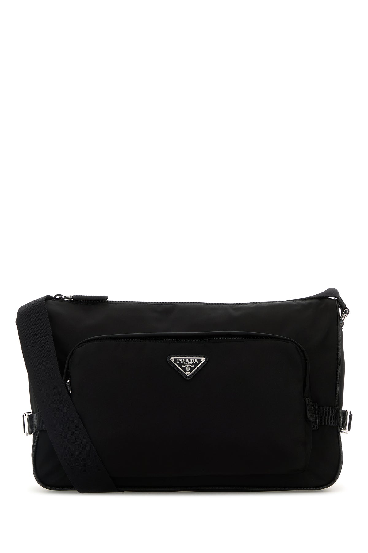 Borsa a tracolla realizzata in Re-Nylon arricchita da iconico triangolo metallico logato sulla parte frontale.