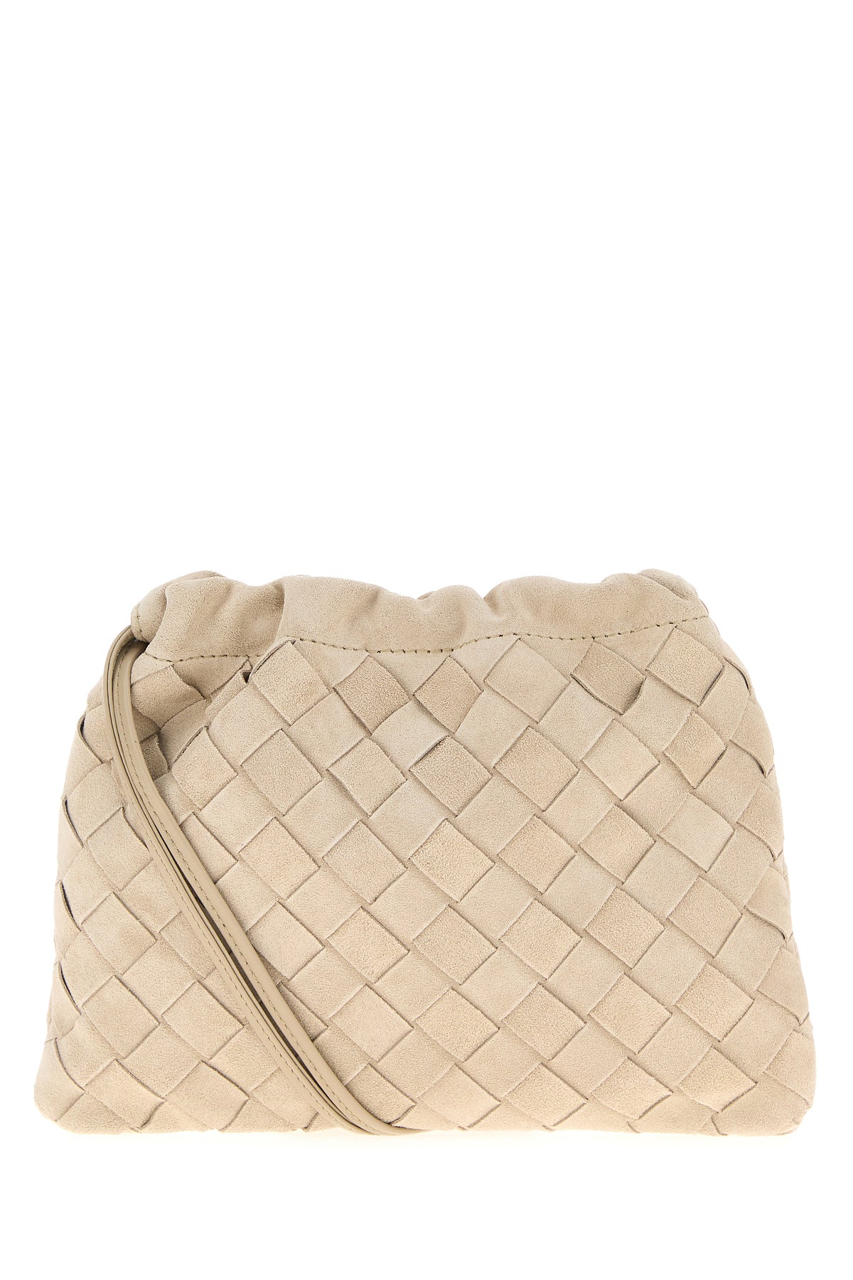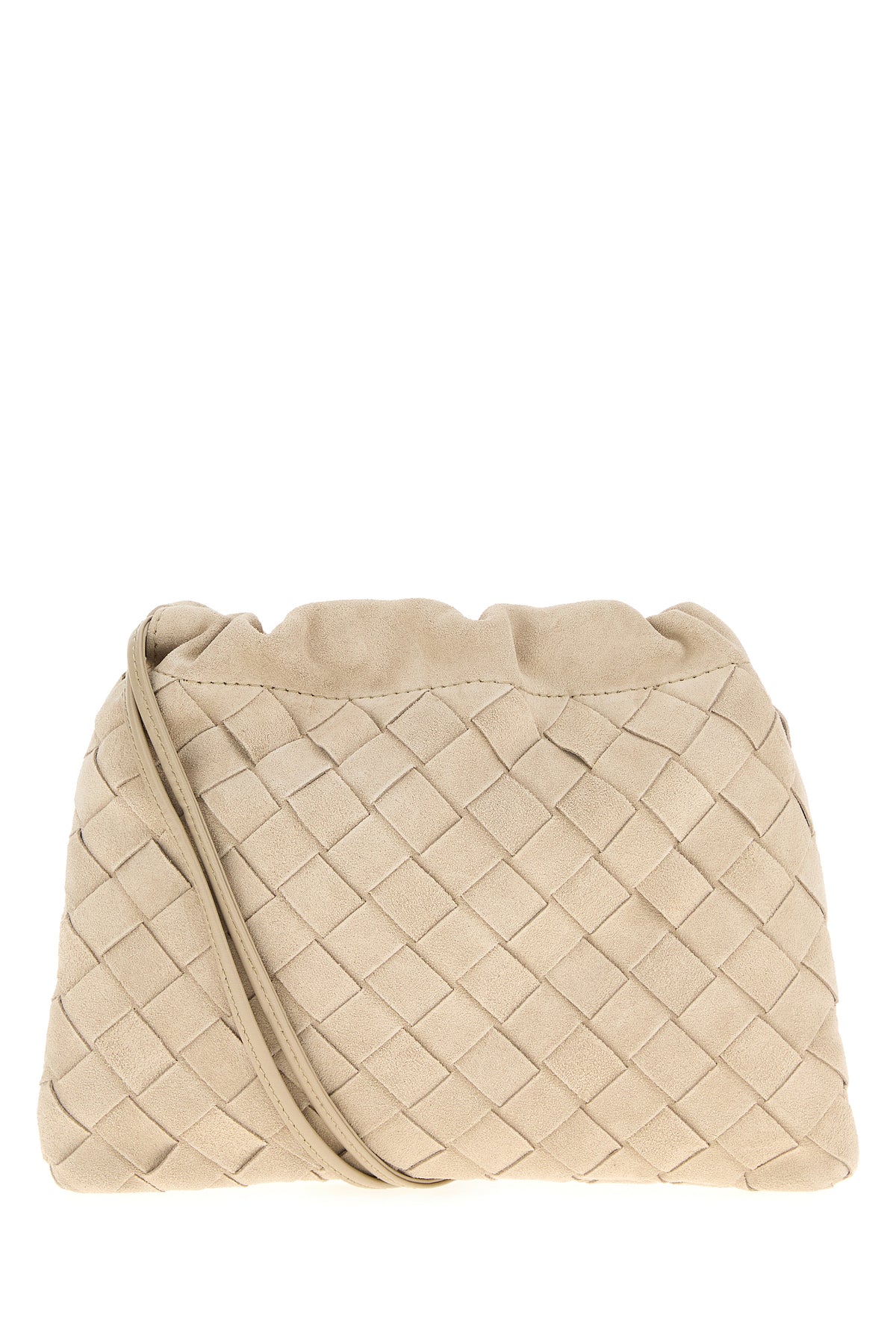 Borsa a tracolla realizzata in pelle scamosciata caratterizzata da iconico motivo Intrecciato su tutta la superficie.