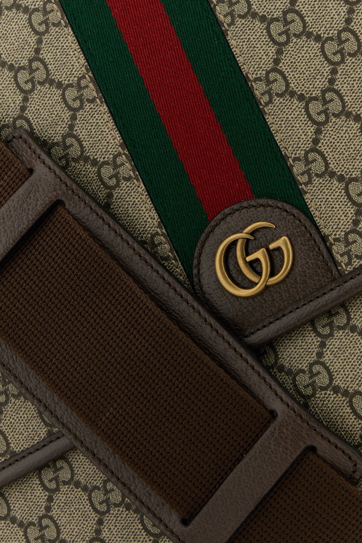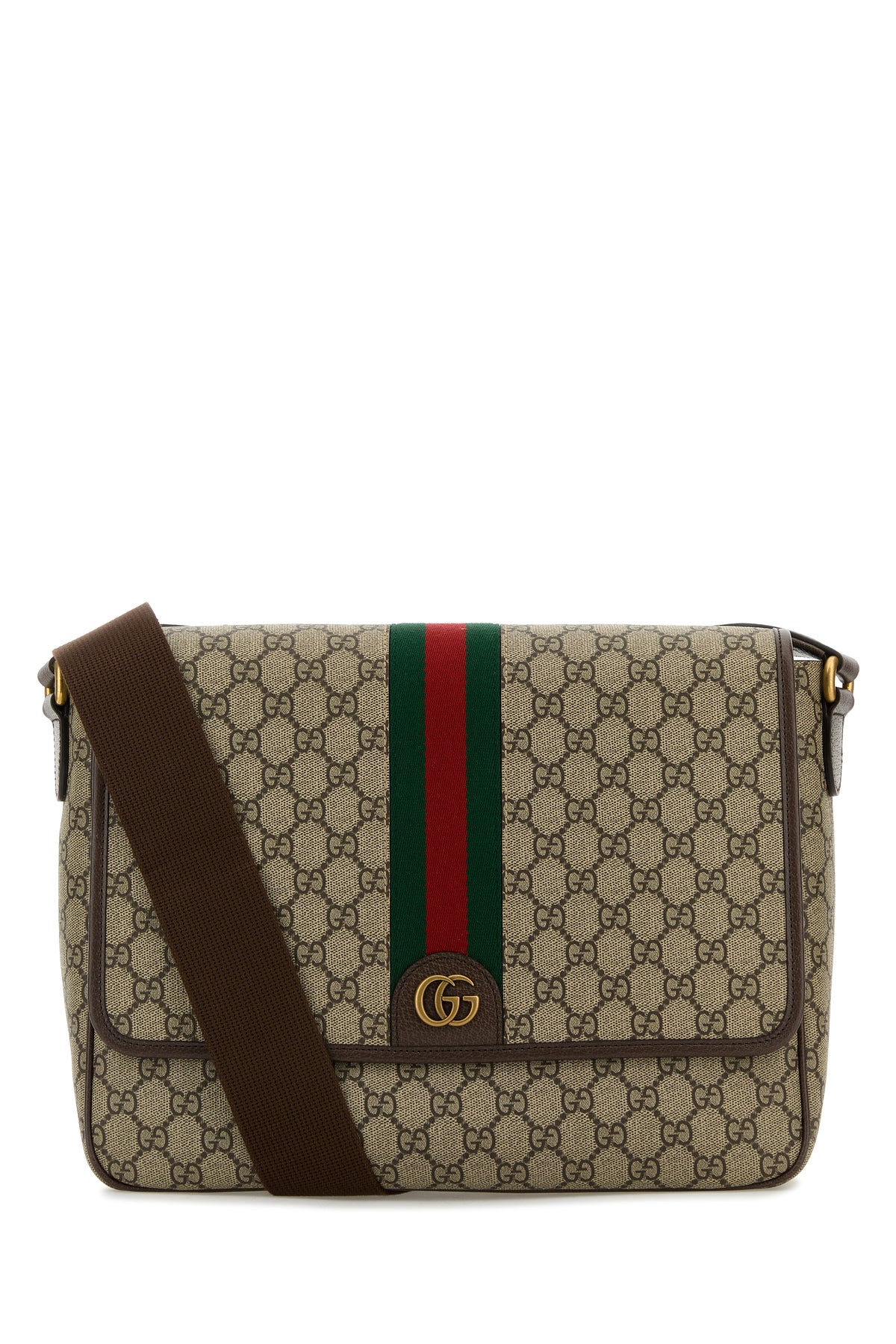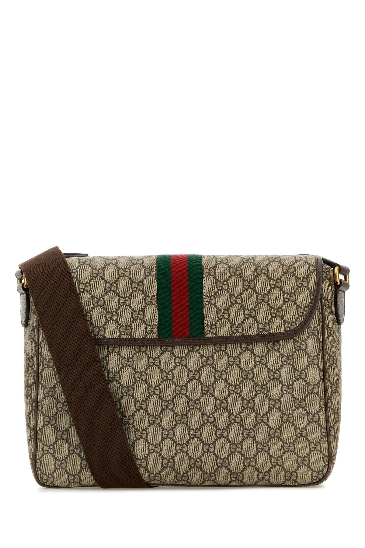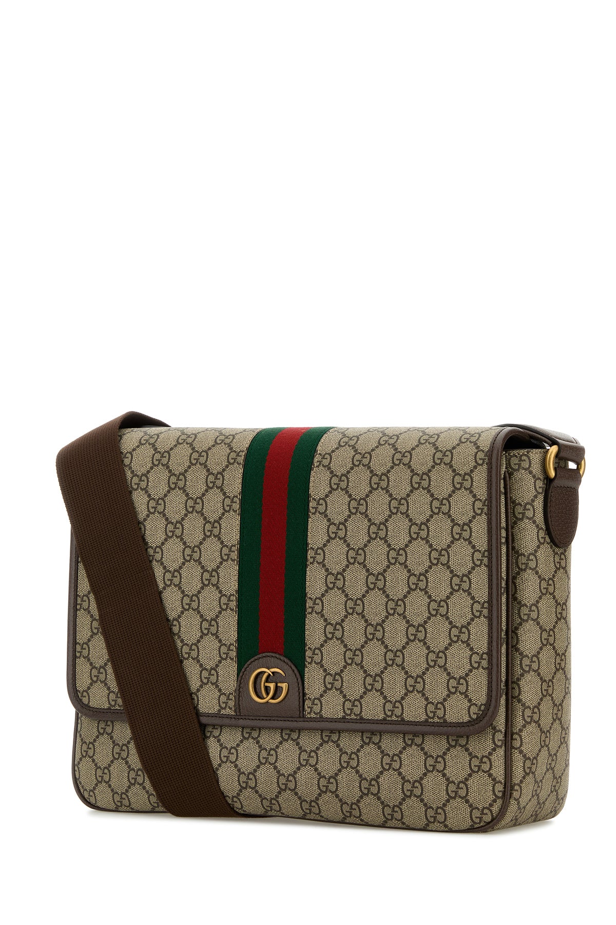 Borsa a tracolla realizzata in tessuto GG Supreme rivestito con inserti in pelle martellata arricchita da dettaglio GG in metallo sulla parte frontale e Nastro Web sulla parte frontale e sul retro.