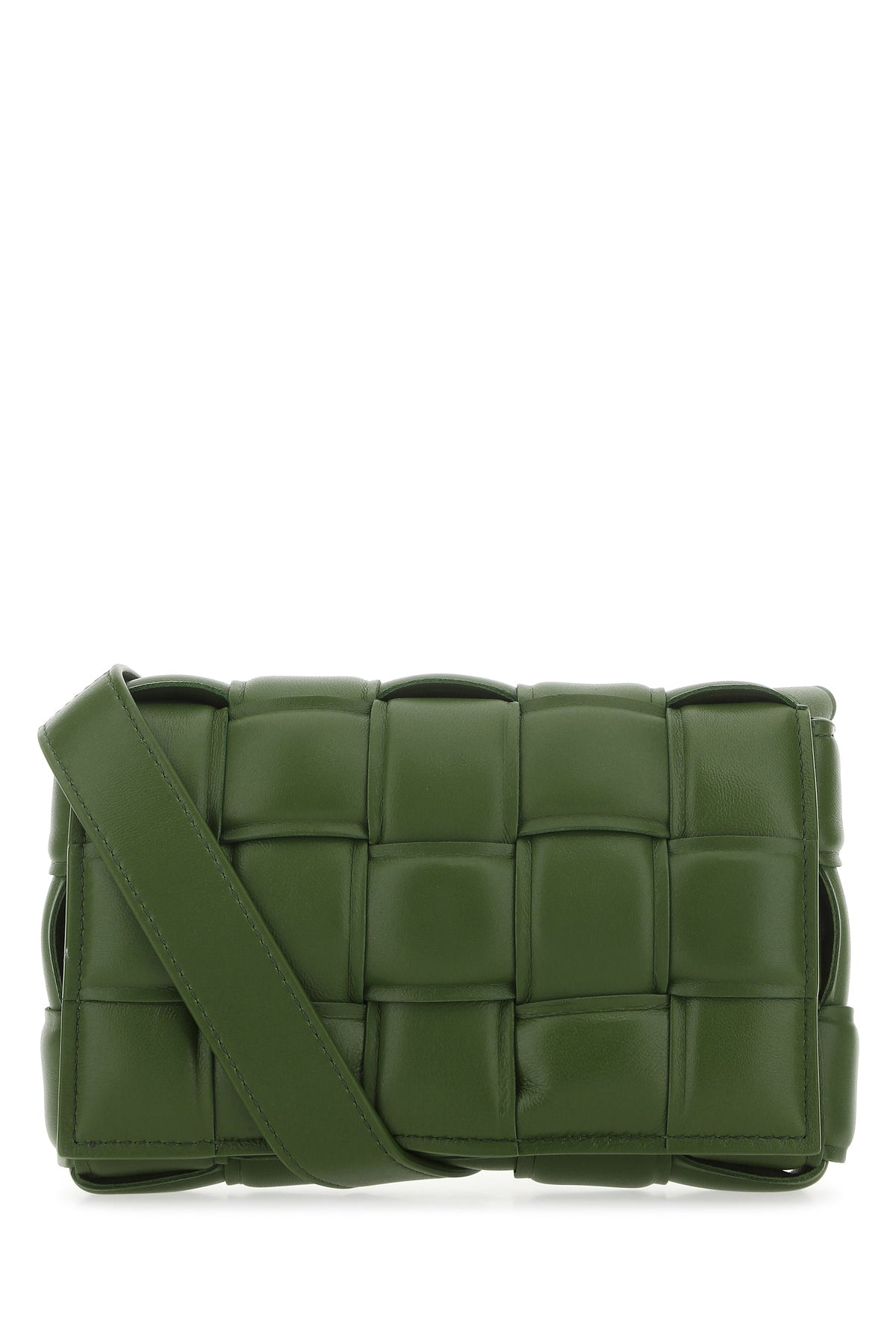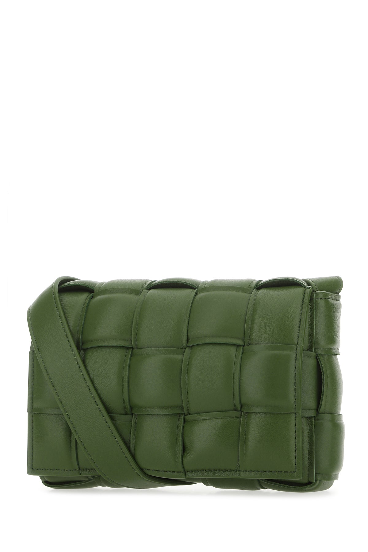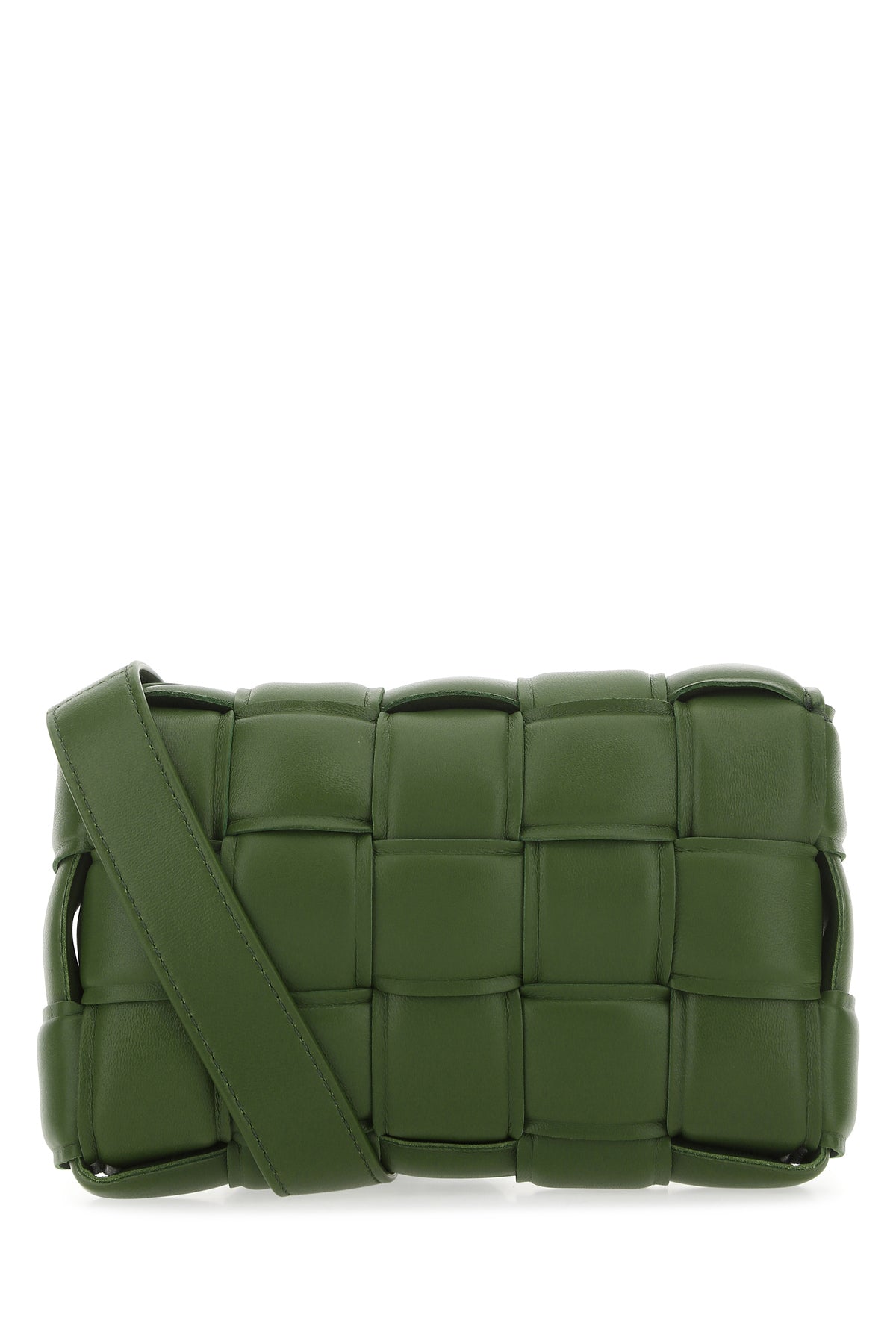 Borsa a tracolla realizzata in nappa di agnello caratterizzata da iconico motivo Intrecciato su tutta la superficie.