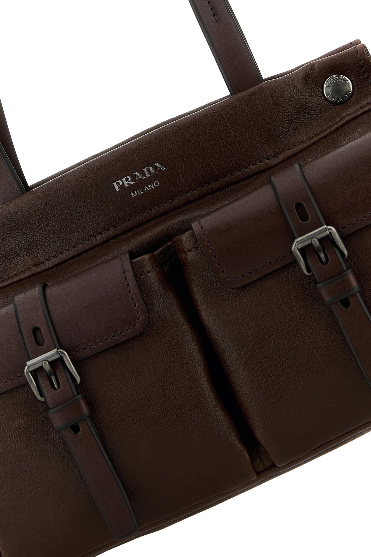 Borsa shopping realizzata in pelle bovina caratterizzata da logo stampato laminato sulla parte frontale.