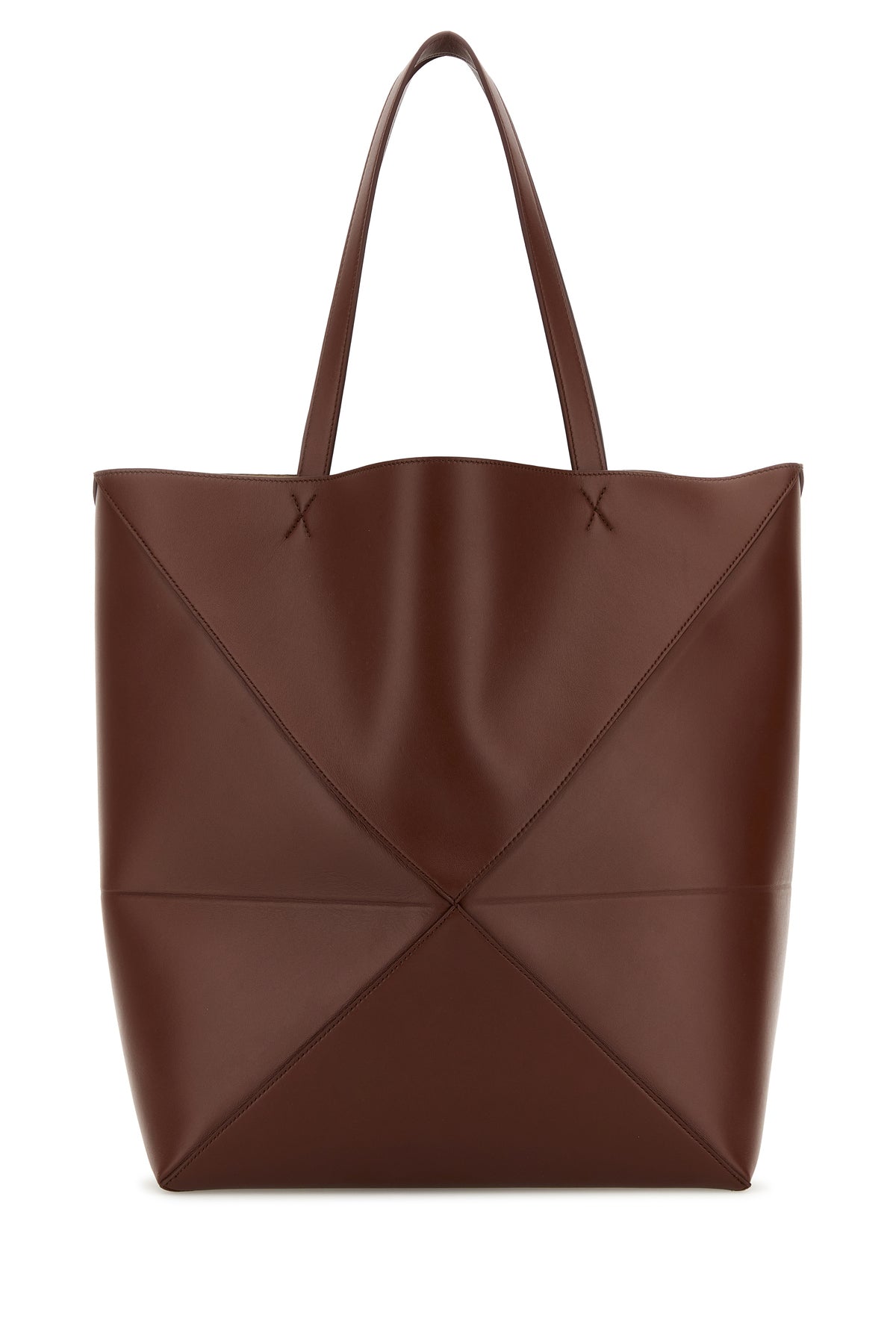 Borsa shopping Puzzle Fold grande in pelle marrone