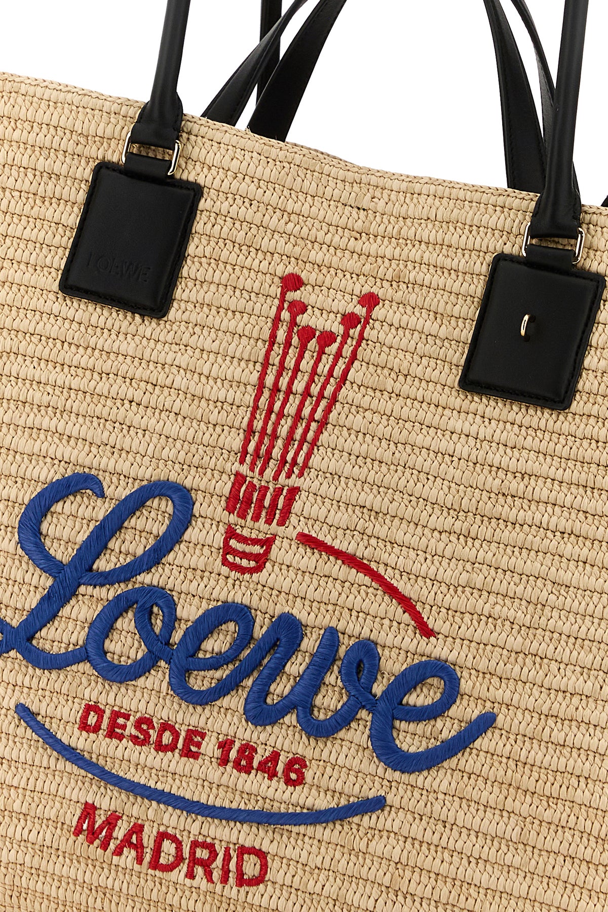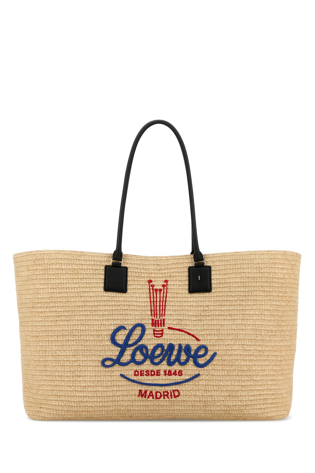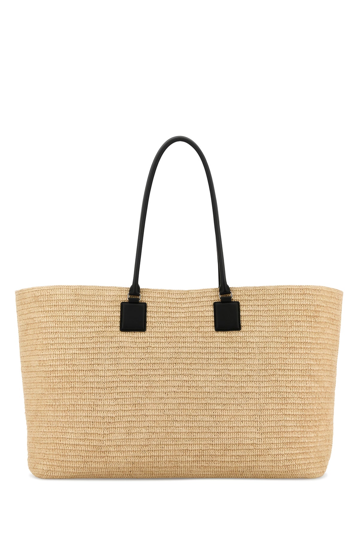 Borsa shopping realizzata in rafia caratterizzata da ricamo logato sulla parte frontale.