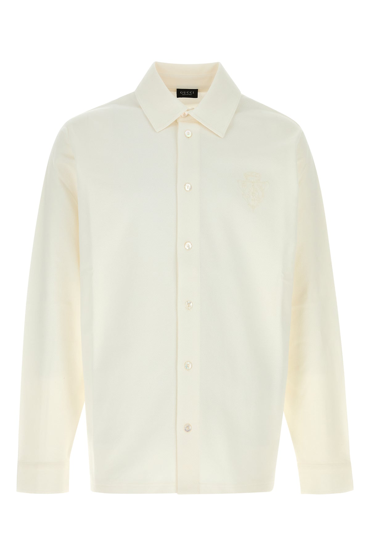 Camicia realizzata in piquet di cotone stretch caratterizzata da ricamo Gucci sul petto.