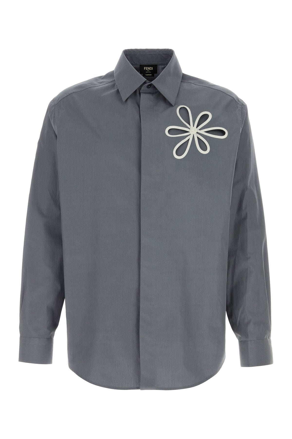 Camicia realizzata in popeline di puro cotone caratterizzata da motivo Fendi Ajour cut-out sulla parte frontale.