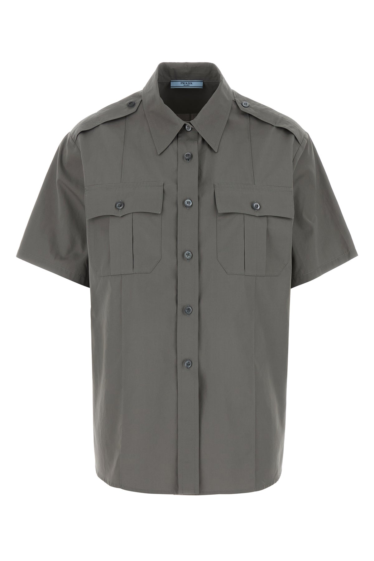 Camicia a maniche corte realizzata in popeline di puro cotone arricchita da iconico triangolo in tessuto sul retro.