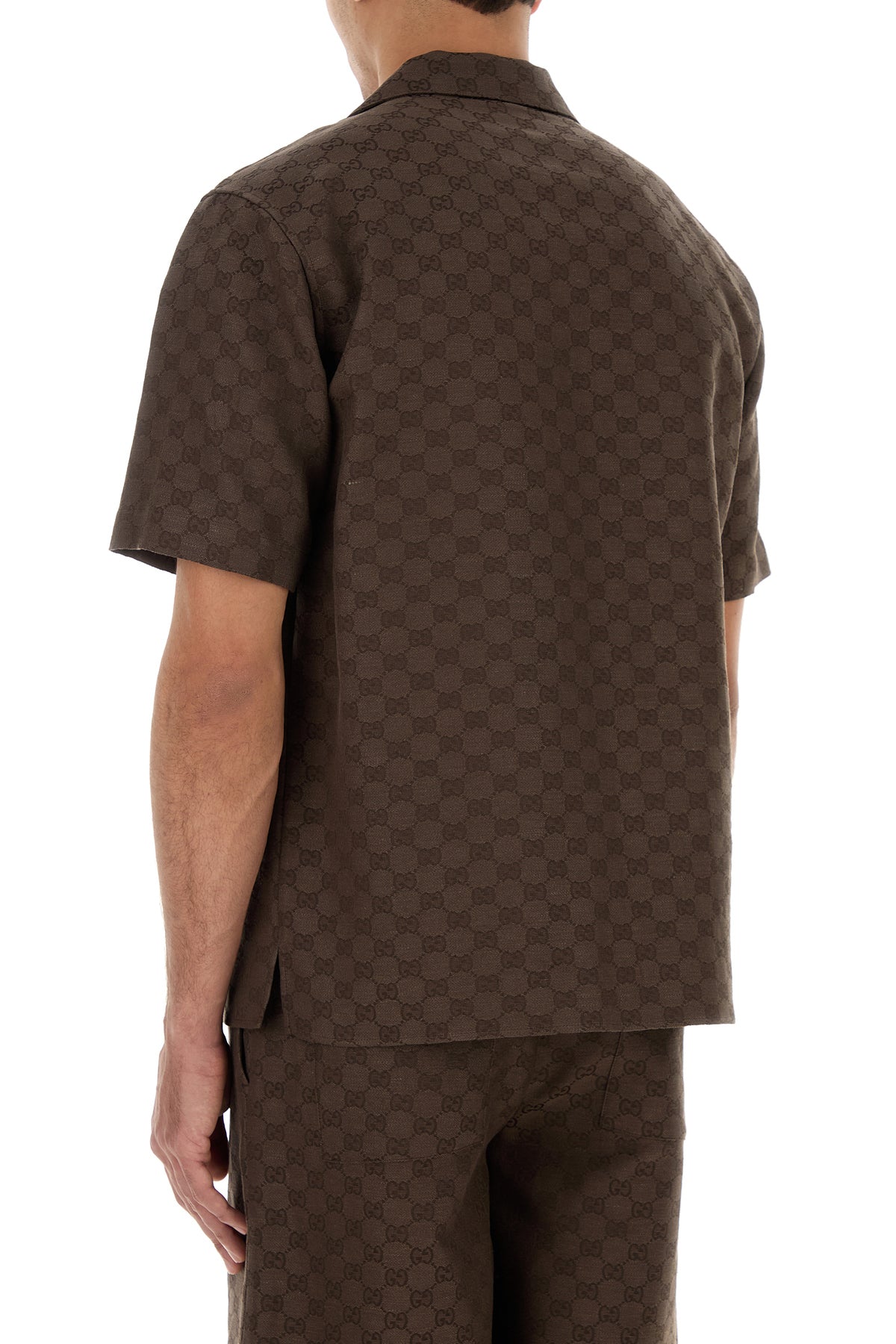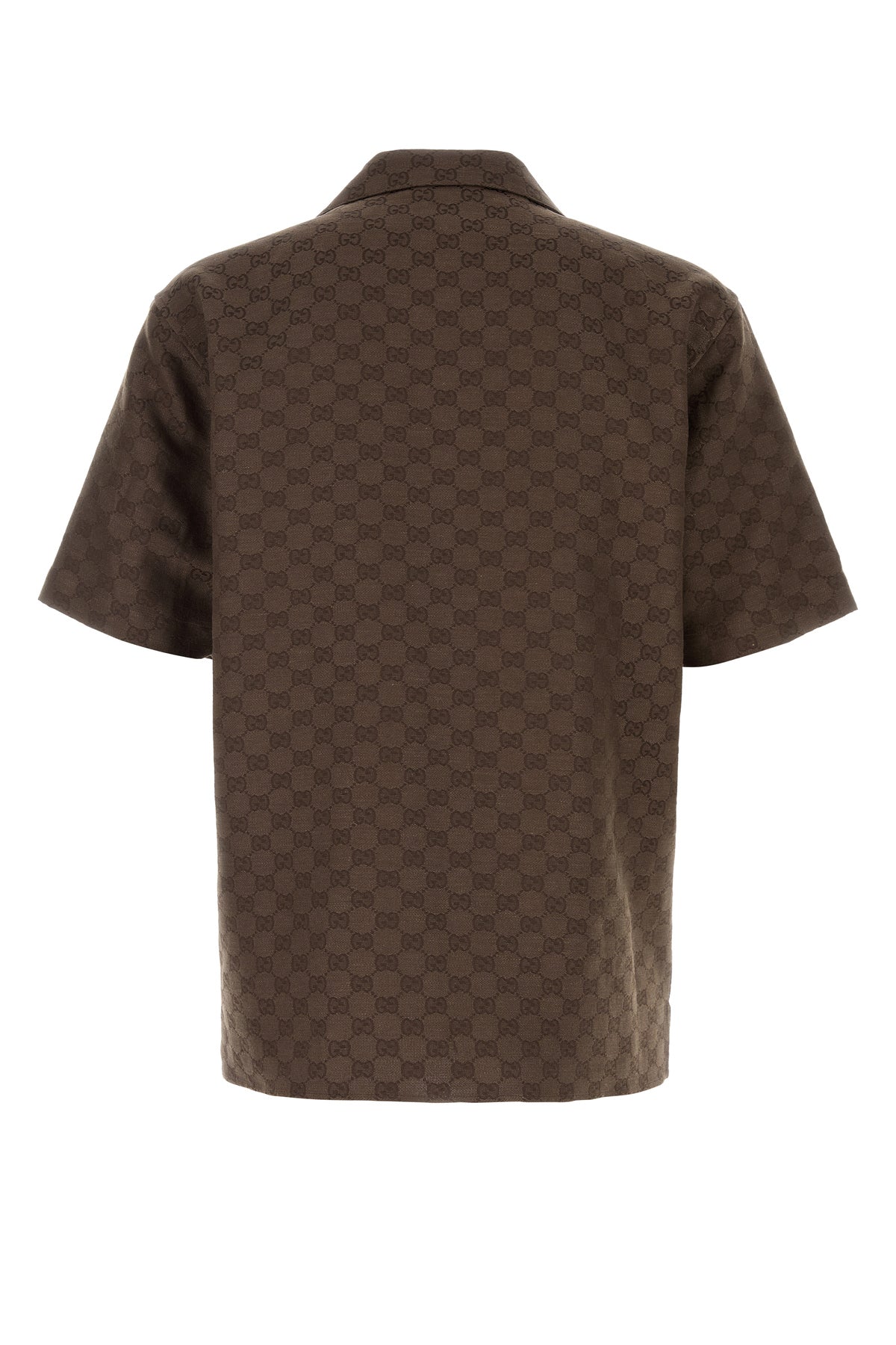Camicia a maniche corte realizzata in tessuto GG di misto lino.