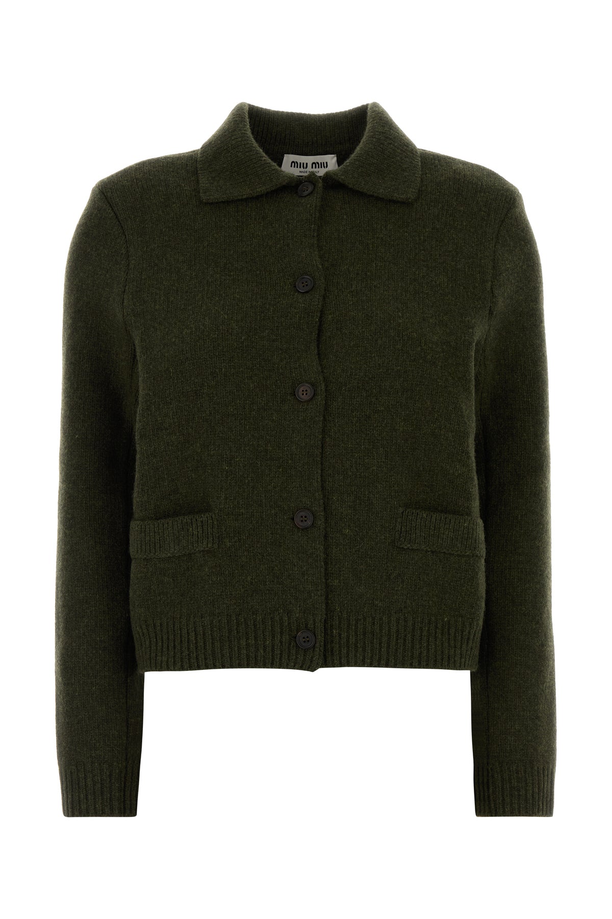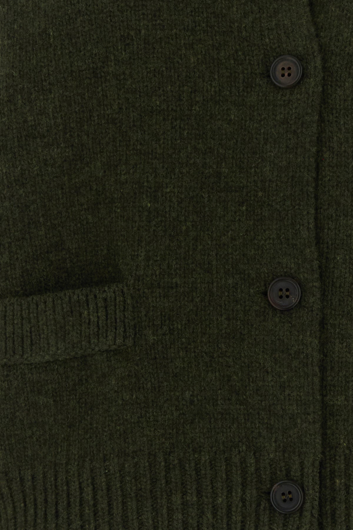 Cardigan realizzato in pura lana arricchito da applicazione logata sul retro.