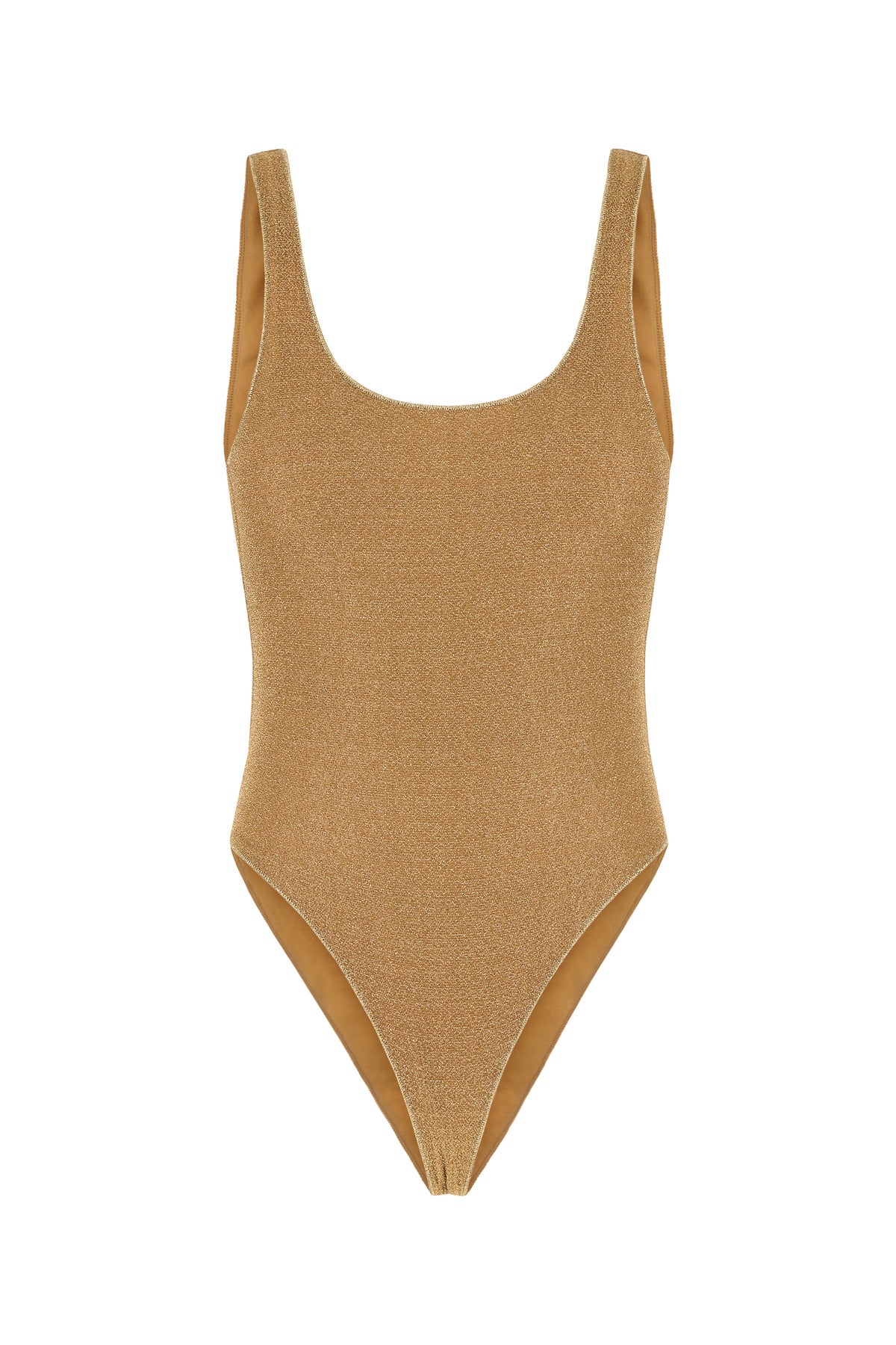 Costume intero realizzato in nylons stretch con fili in lurex caratterizzato da scollatura sul retro.