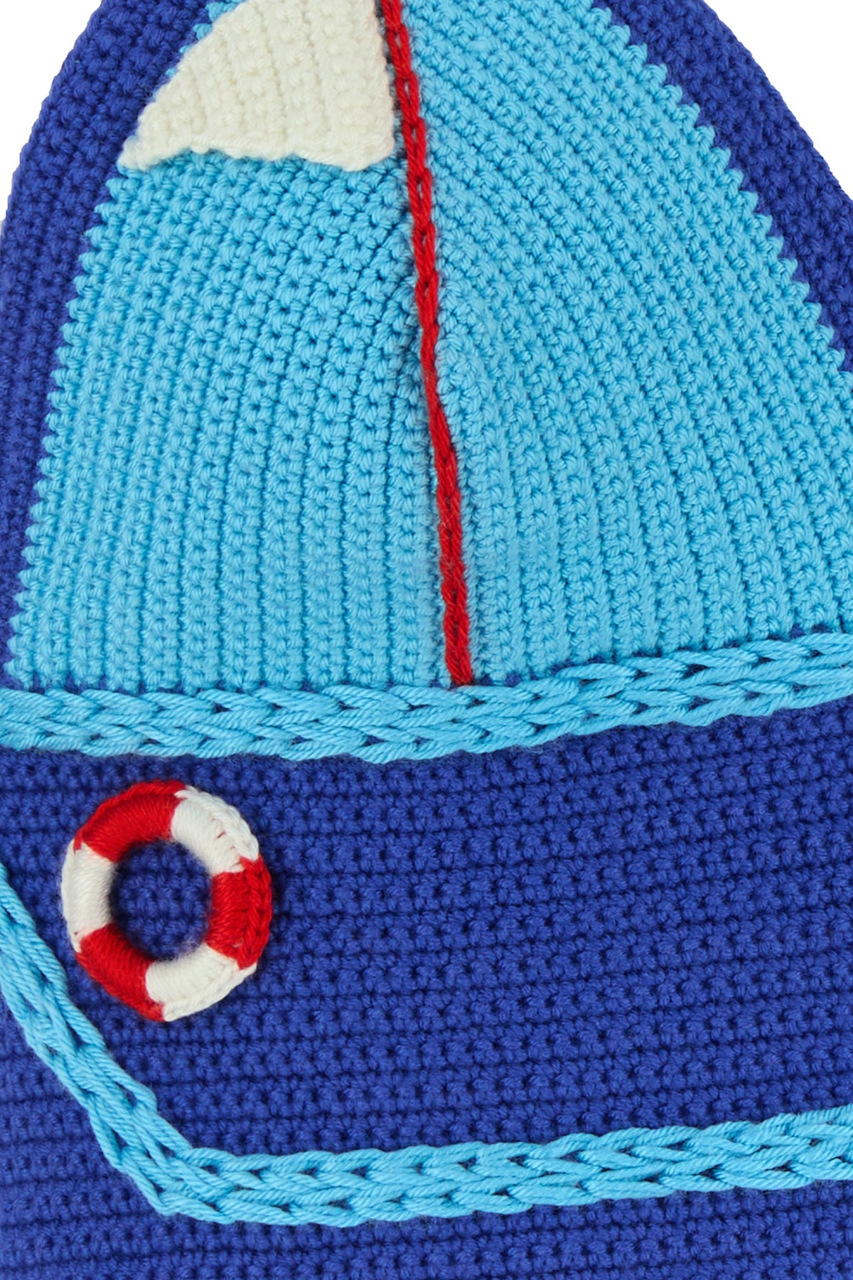 Crop-top realizzato in crochet arricchito da applicazioni Nautical sulla parte frontale.