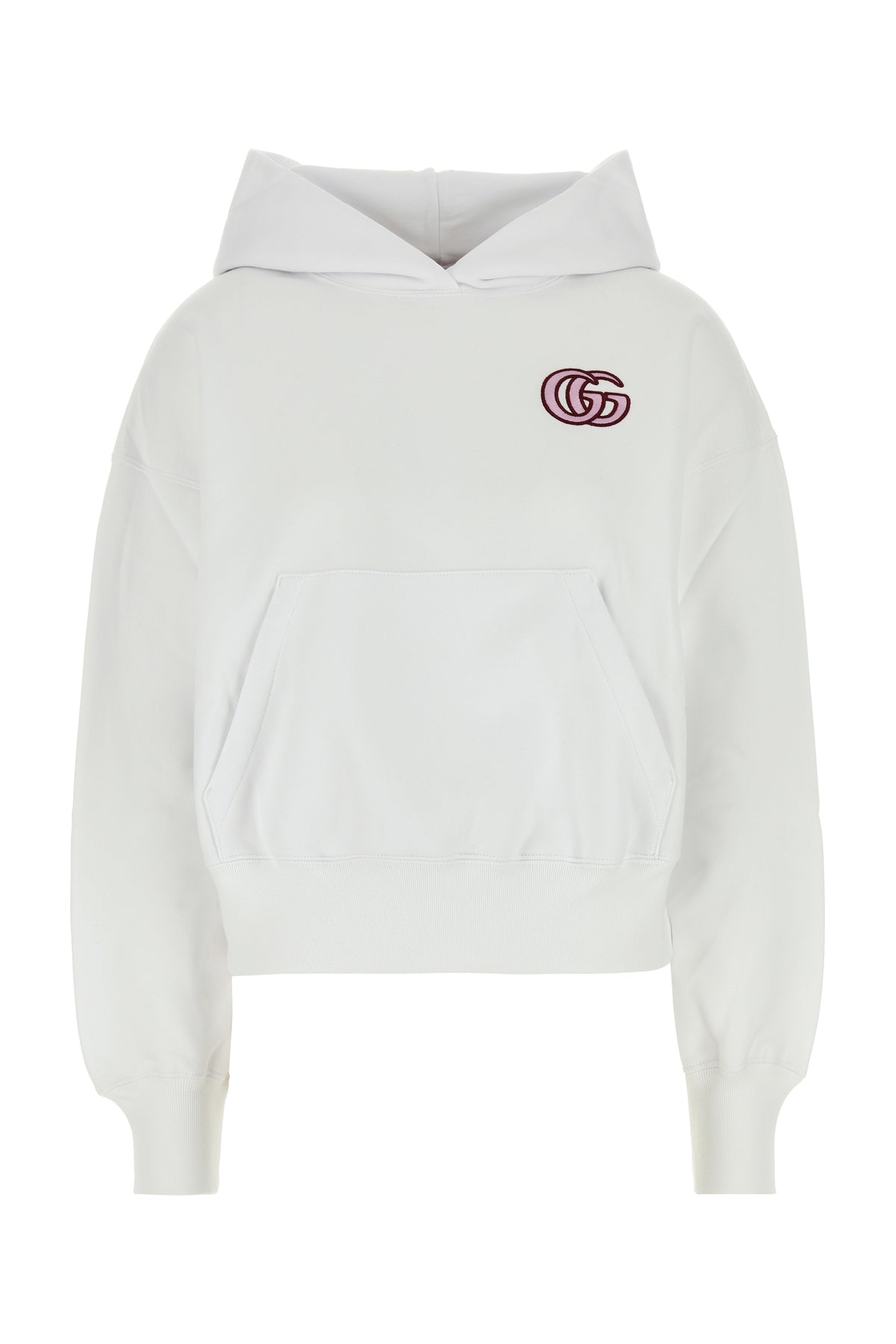 Felpa realizzata in puro cotone arricchita da applicazione Doppia G a contrasto sul petto.