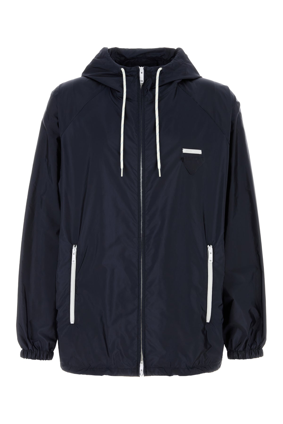 Giacca a vento realizzata in Re-Nylon arricchita da iconico triangolo in tessuto tonale sul petto.