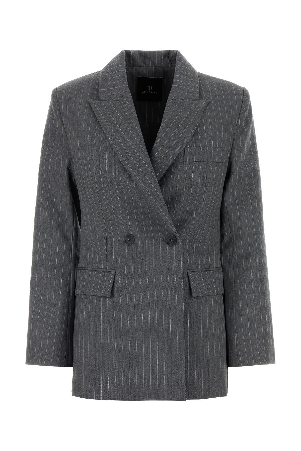 Giacca realizzata in twill di misto lana caratterizzata da ricamo a righe su tutta la superficie.