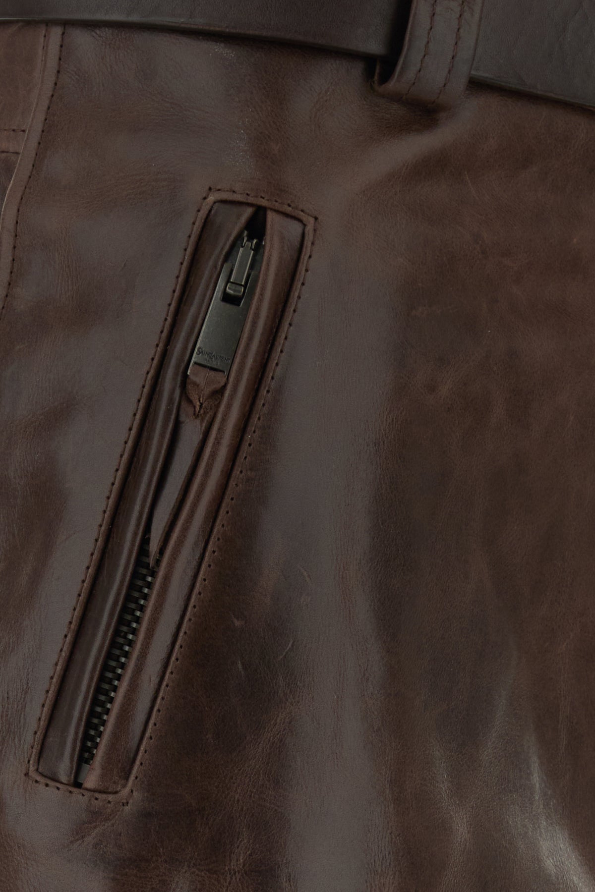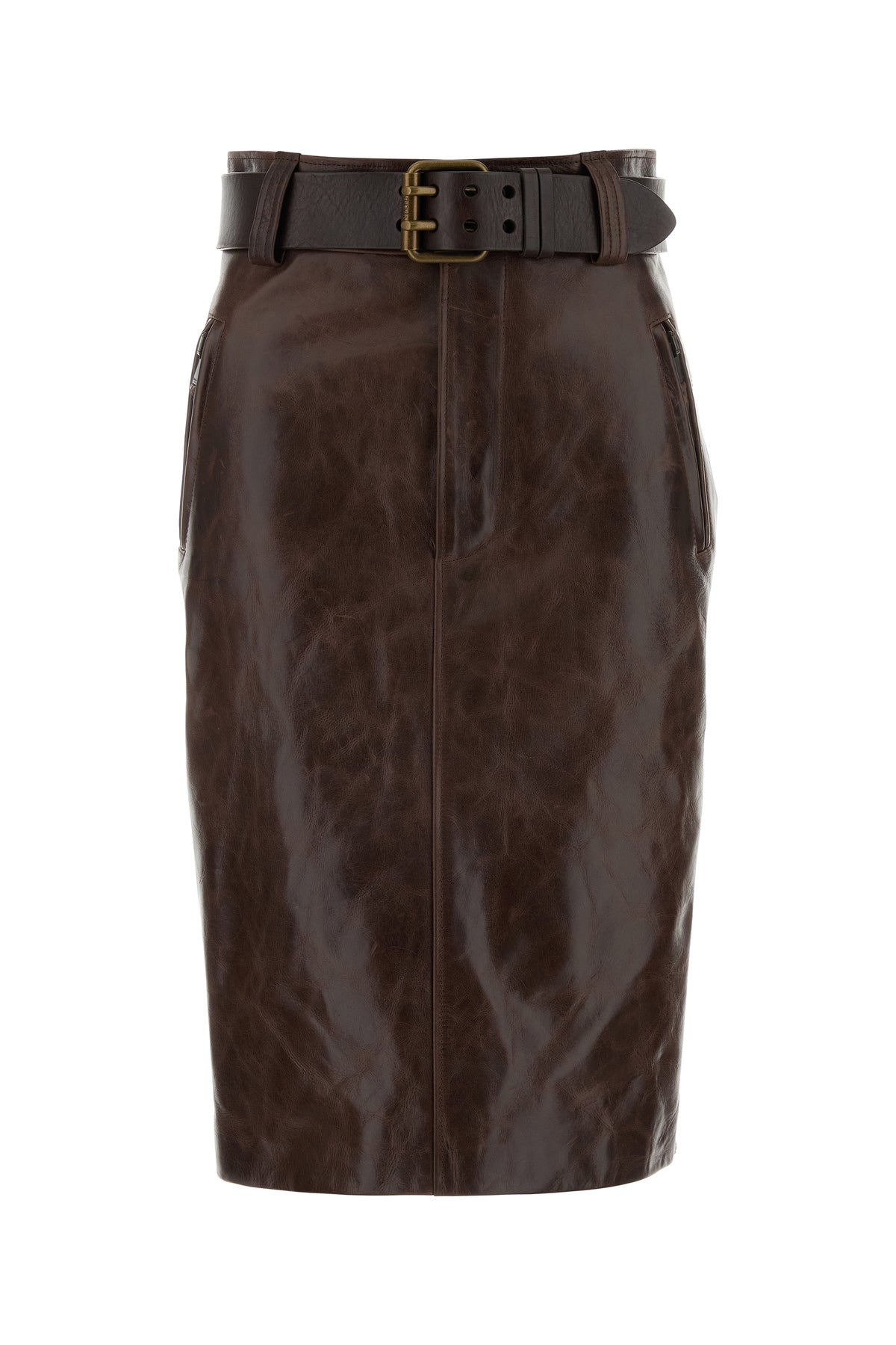 Gonna realizzata in pelle di vitello arricchita da cintura in pelle.