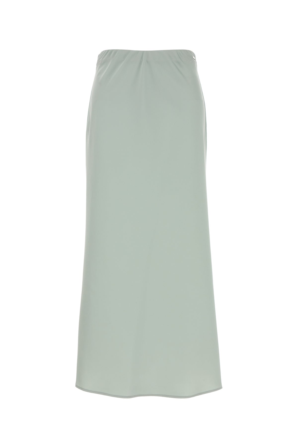 Gonna midi realizzata in raso arricchita da targhetta metallica logata in vita.