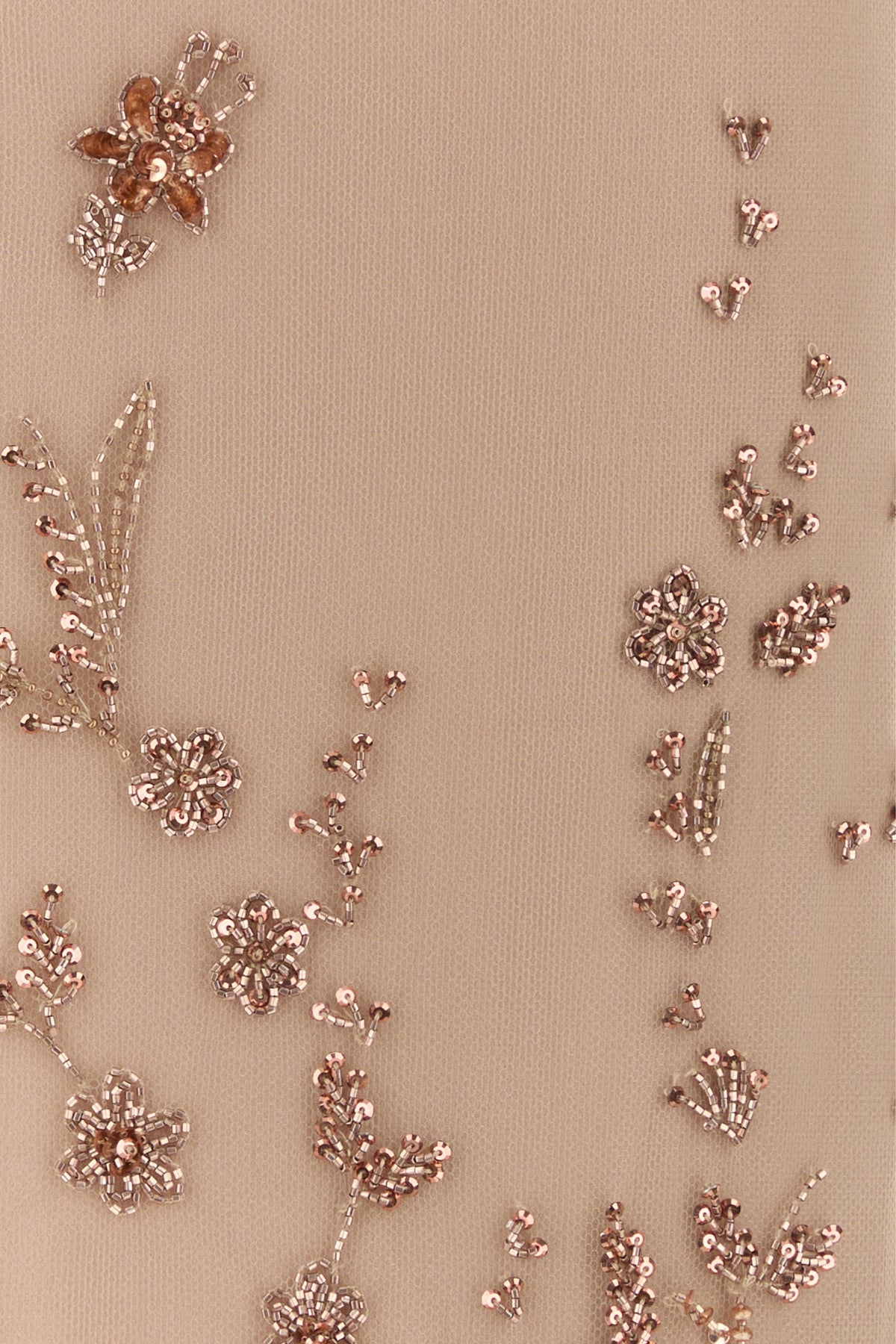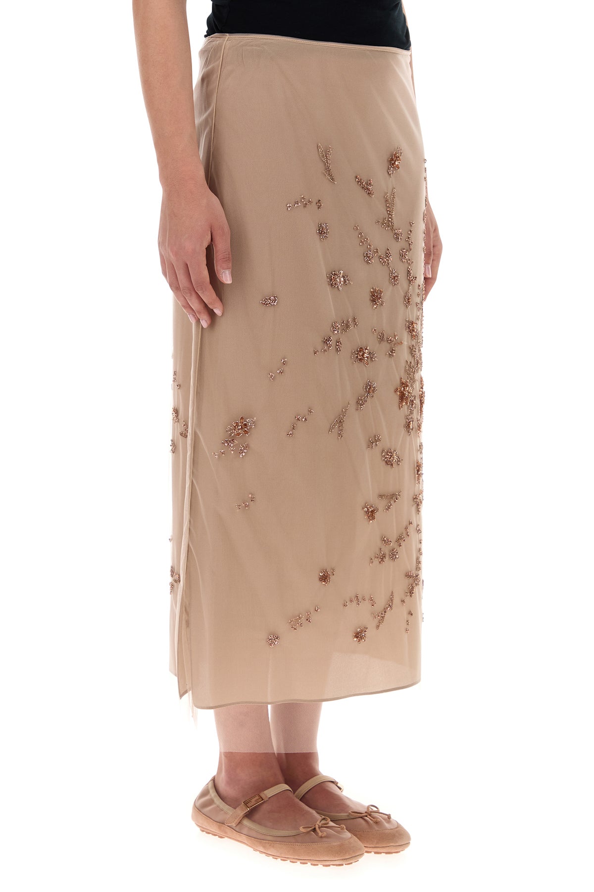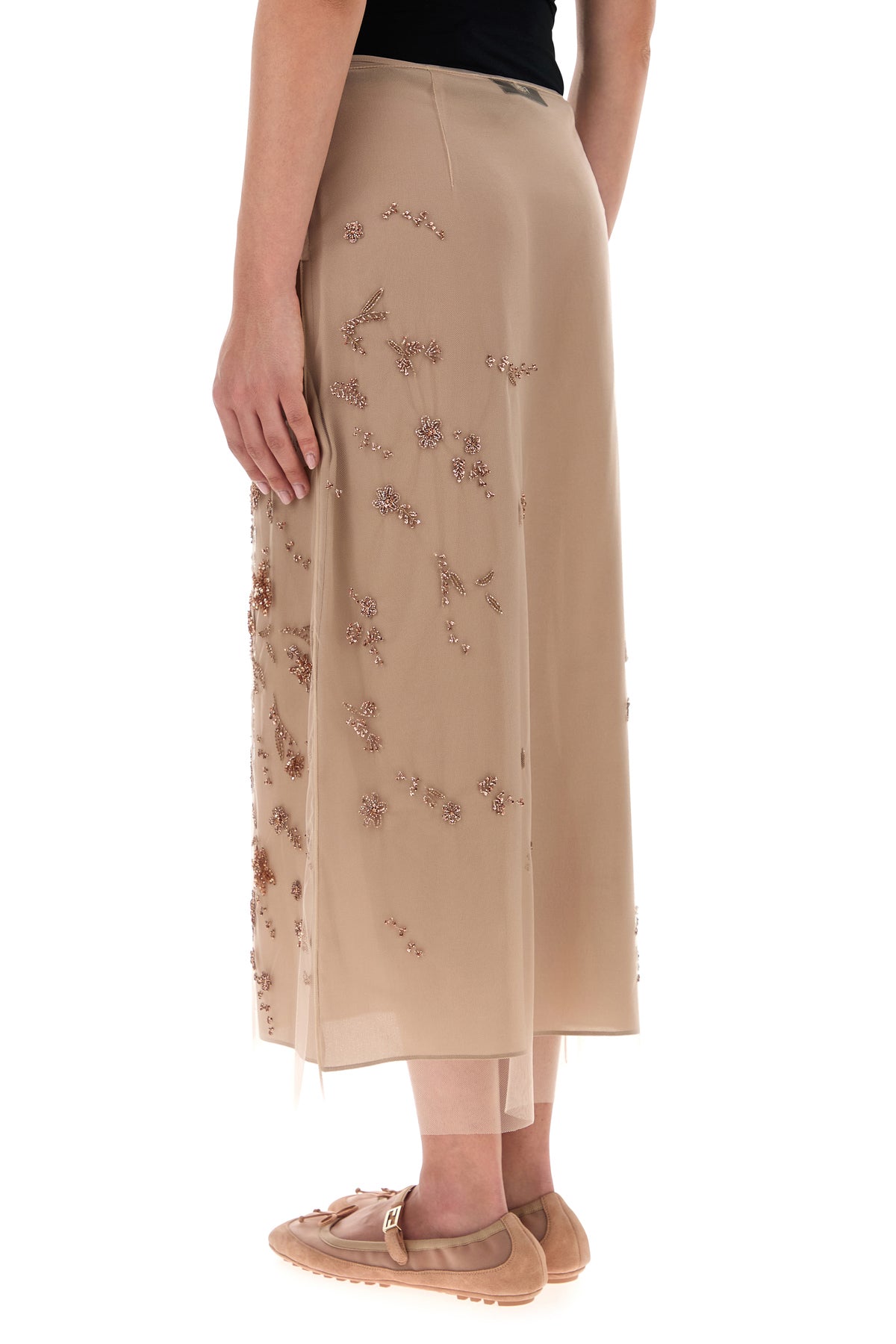 Gonna realizzata in tulle arricchita da applicazioni floreali in perline su tutta la superficie.