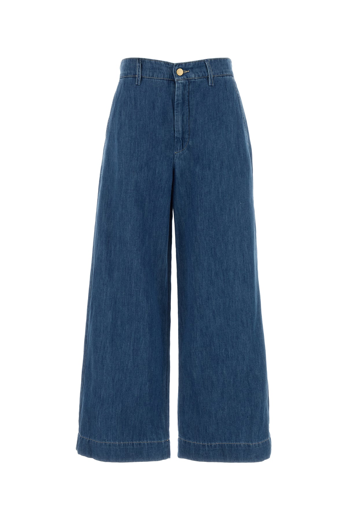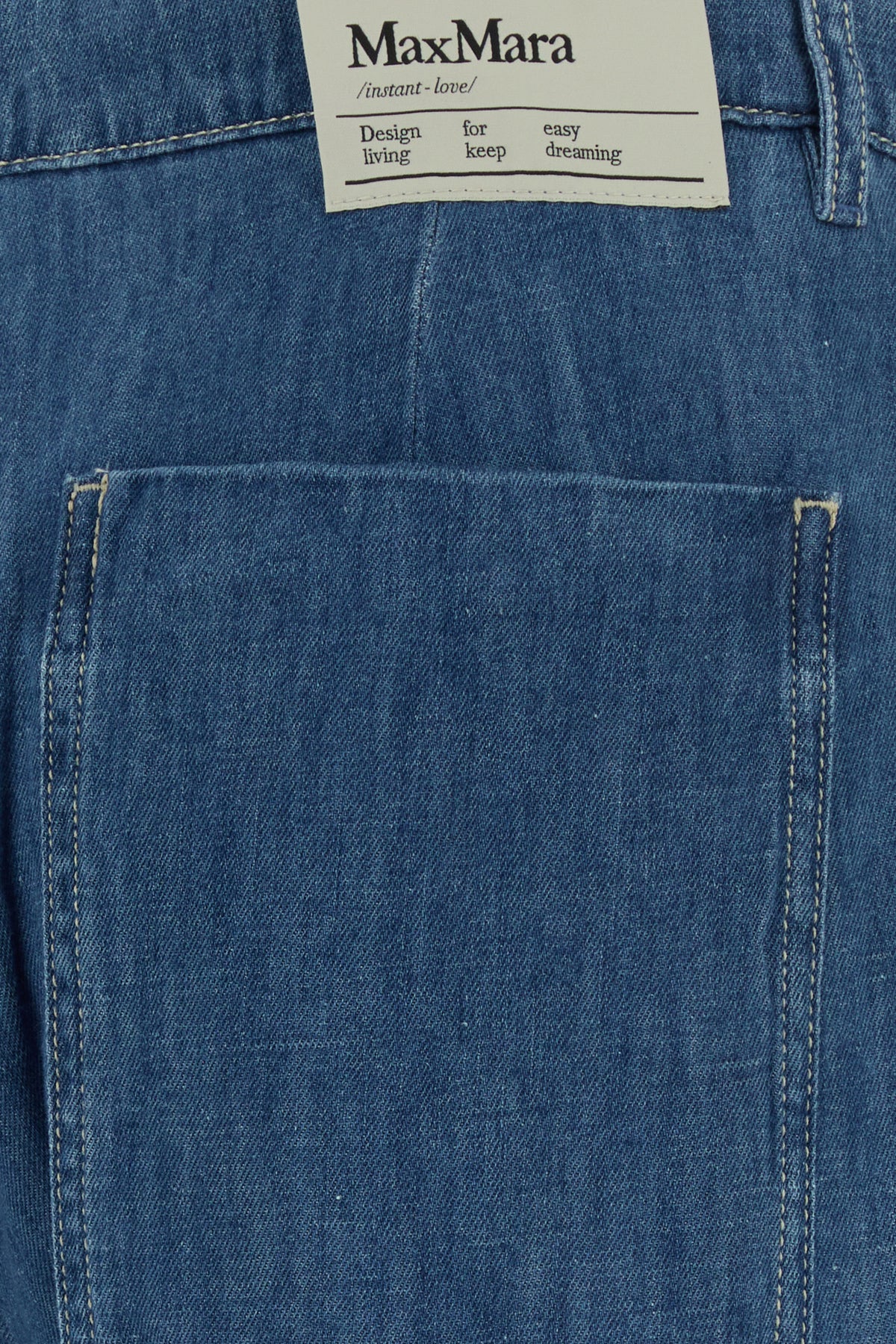 Jeans dalla gamba ampia realizzati in denim di cotone e lino arricchiti da etichetta logata sul retro.