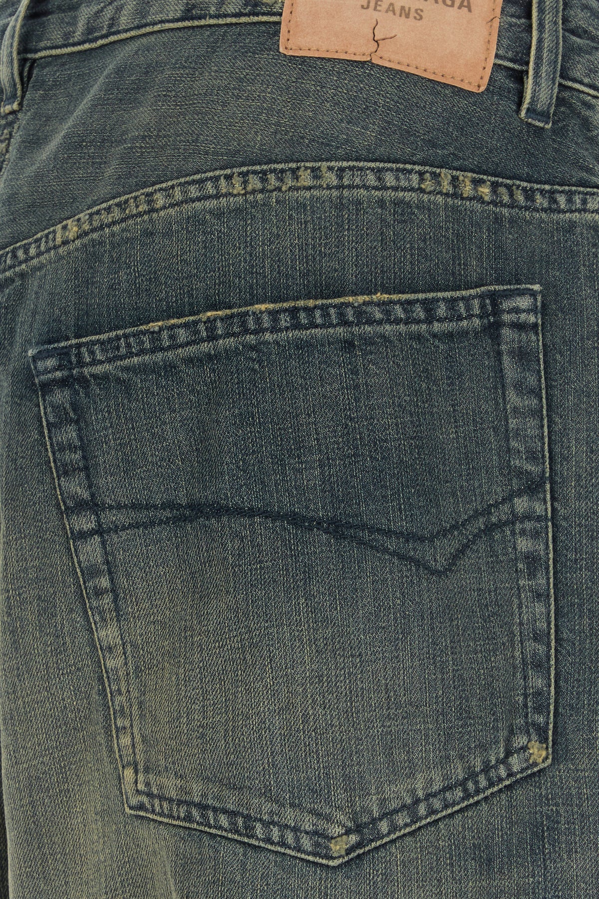 Jeans dalla gamba ampia realizzati in denim di puro cotone sdrucito ad effetto vintage arricchito da etichetta logata sul retro.