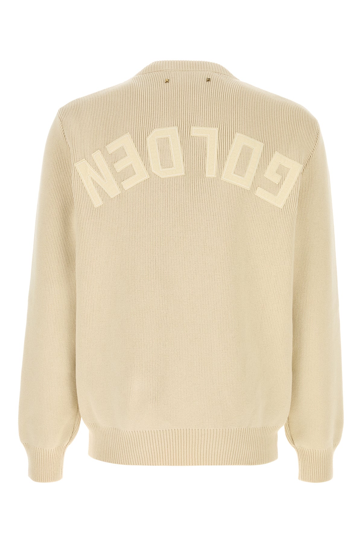 Maglione realizzato in misto cotone stretch arricchito da applicazione logata e dettaglio metallico Star sul retro.