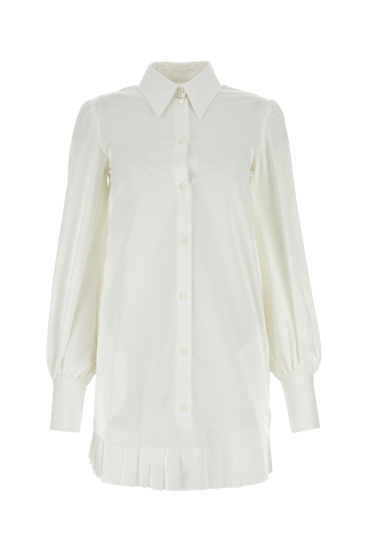 Mini abito chemisier realizzato in popeline di puro cotone caratterizzato da ricamo OW tonale sul fondo.