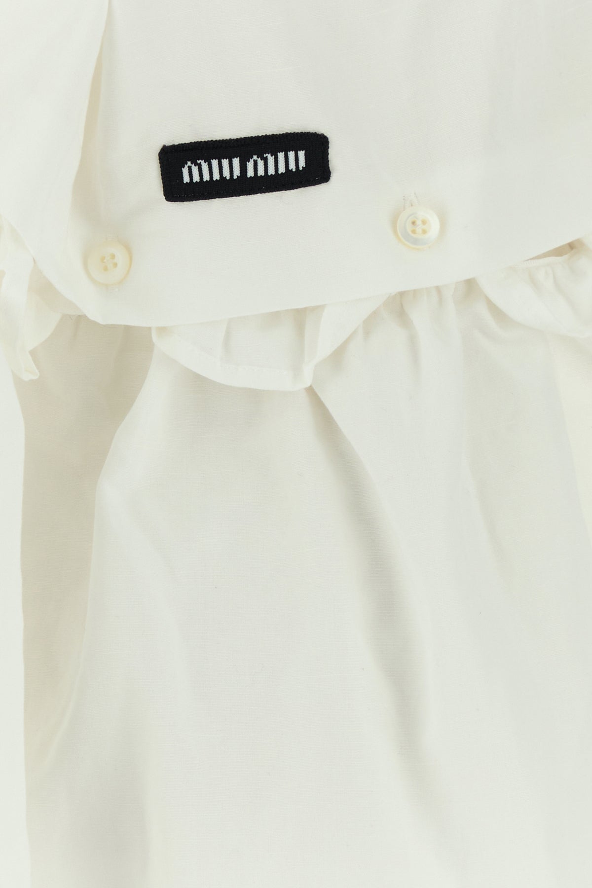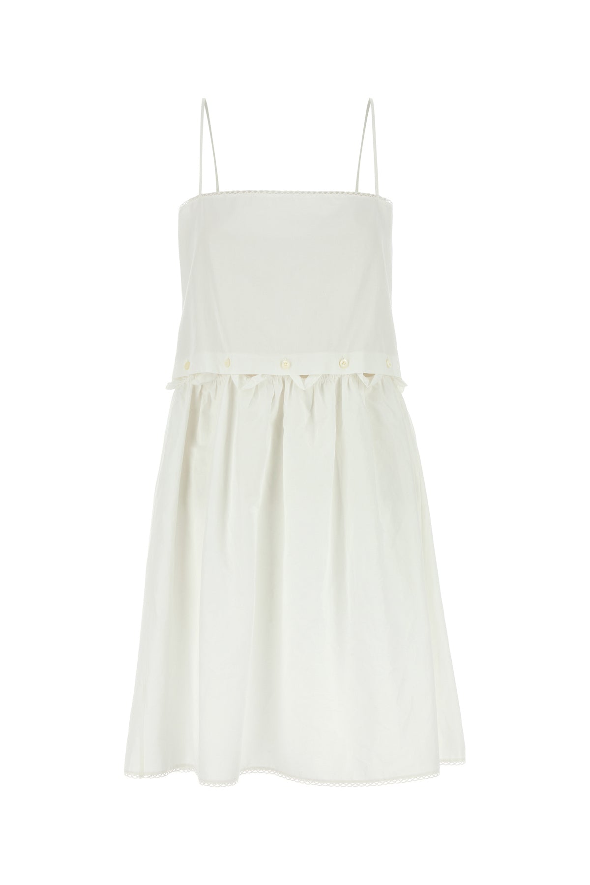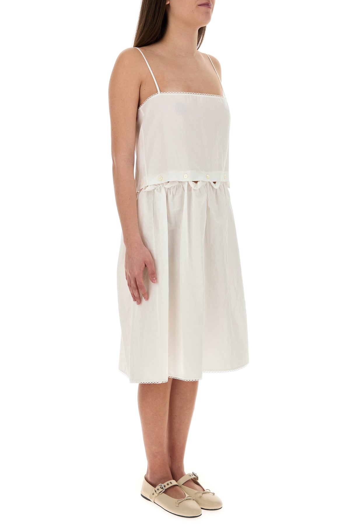 Mini abito realizzato in popeline di cotone e lino arricchito da applicazione logata a contrasto sul retro.