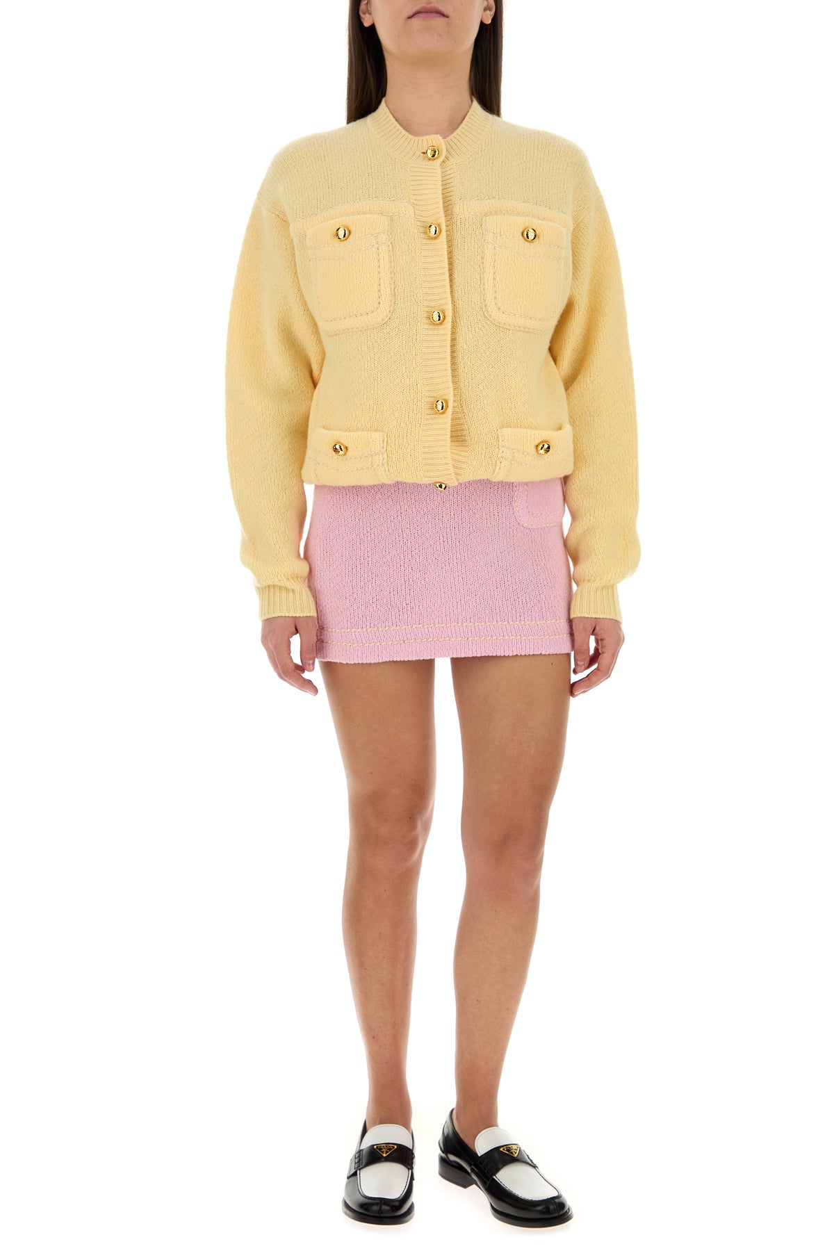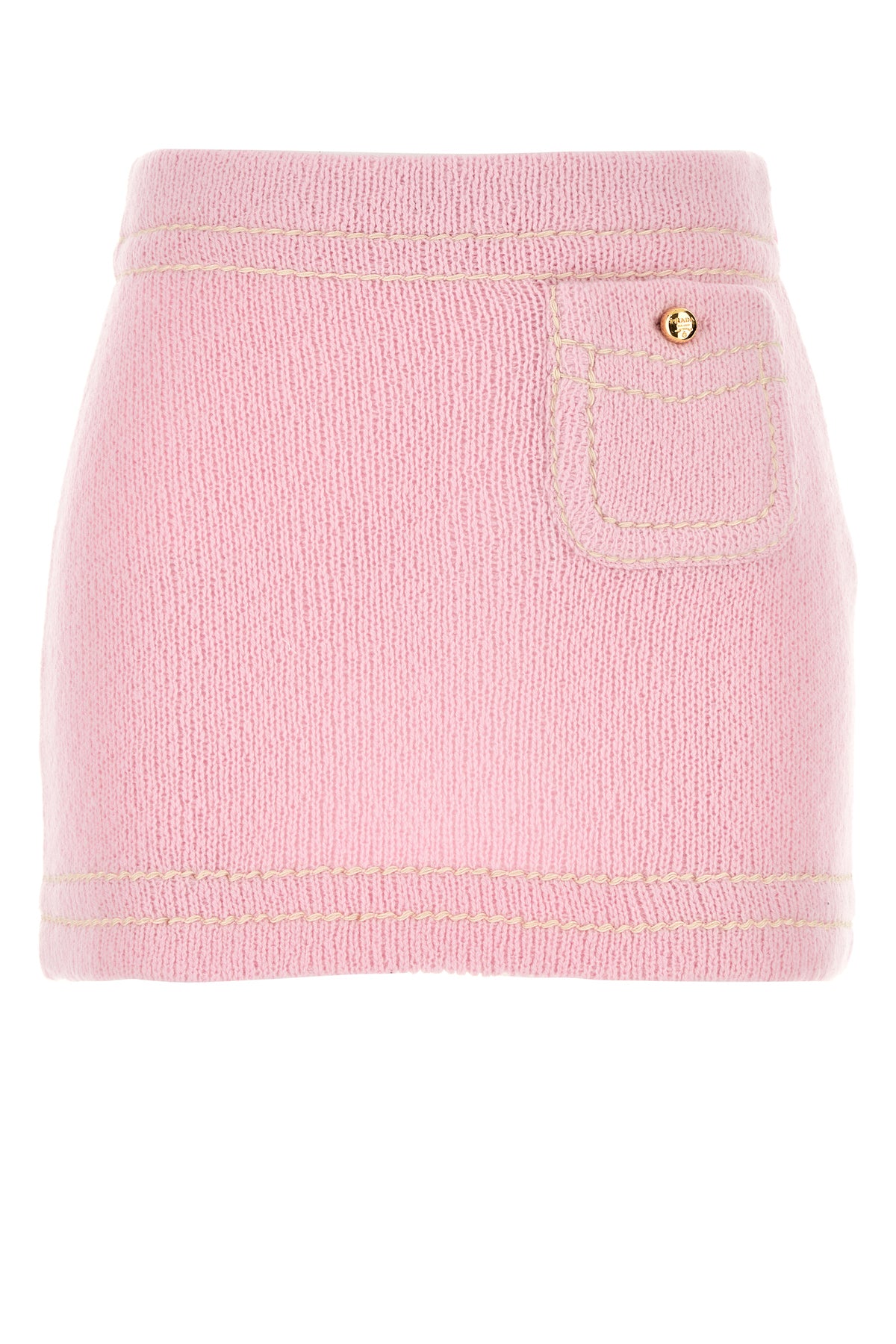 Minigonna realizzata in puro cashmere arricchita da iconico triangolo in tessuto tonale sul retro.