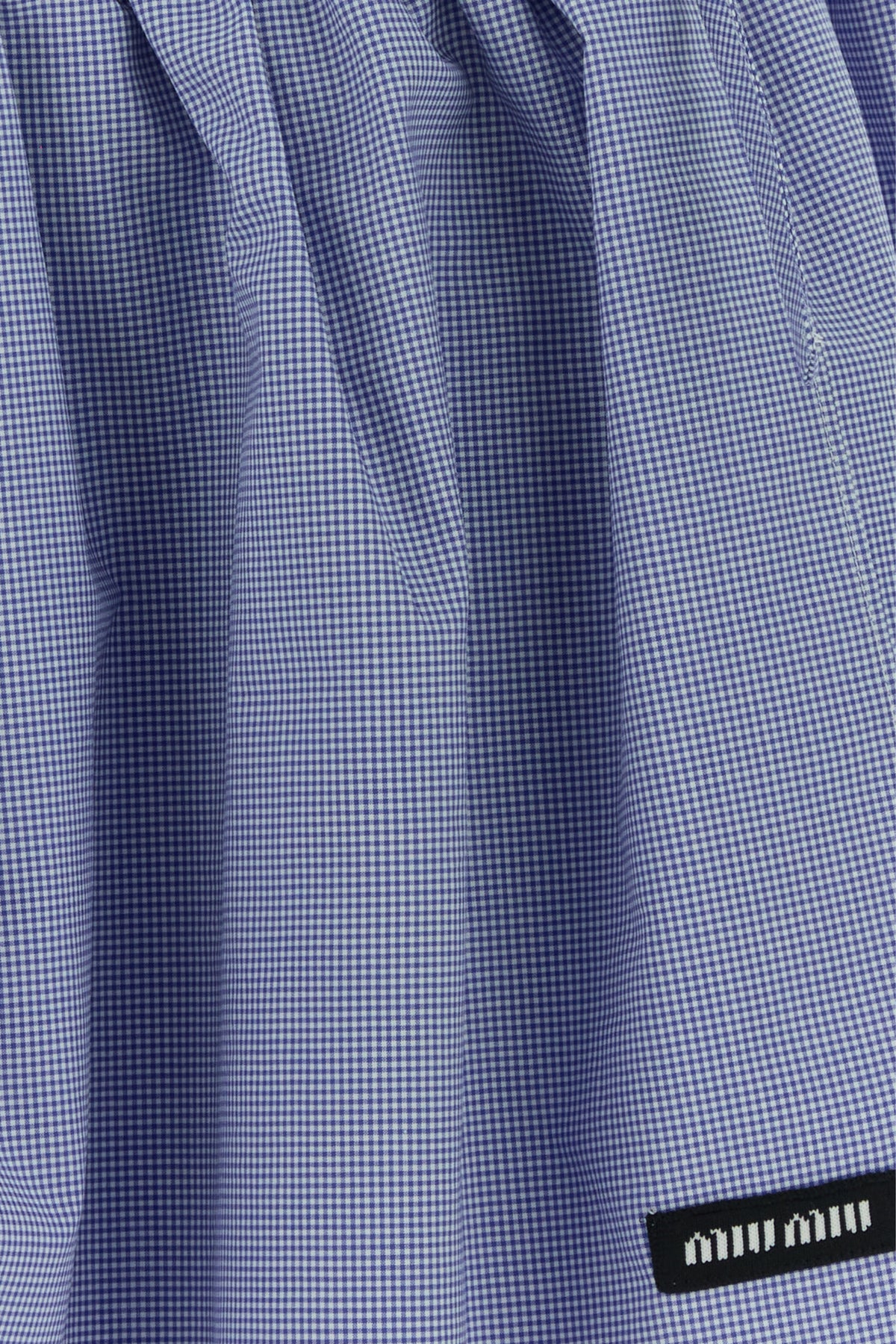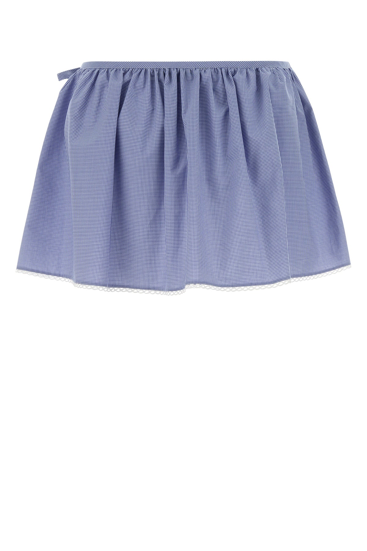 Minigonna realizzata in puro cotone caratterizzata da ricamo vichy su tutta la superficie arricchita da applicazione logata sul fondo.