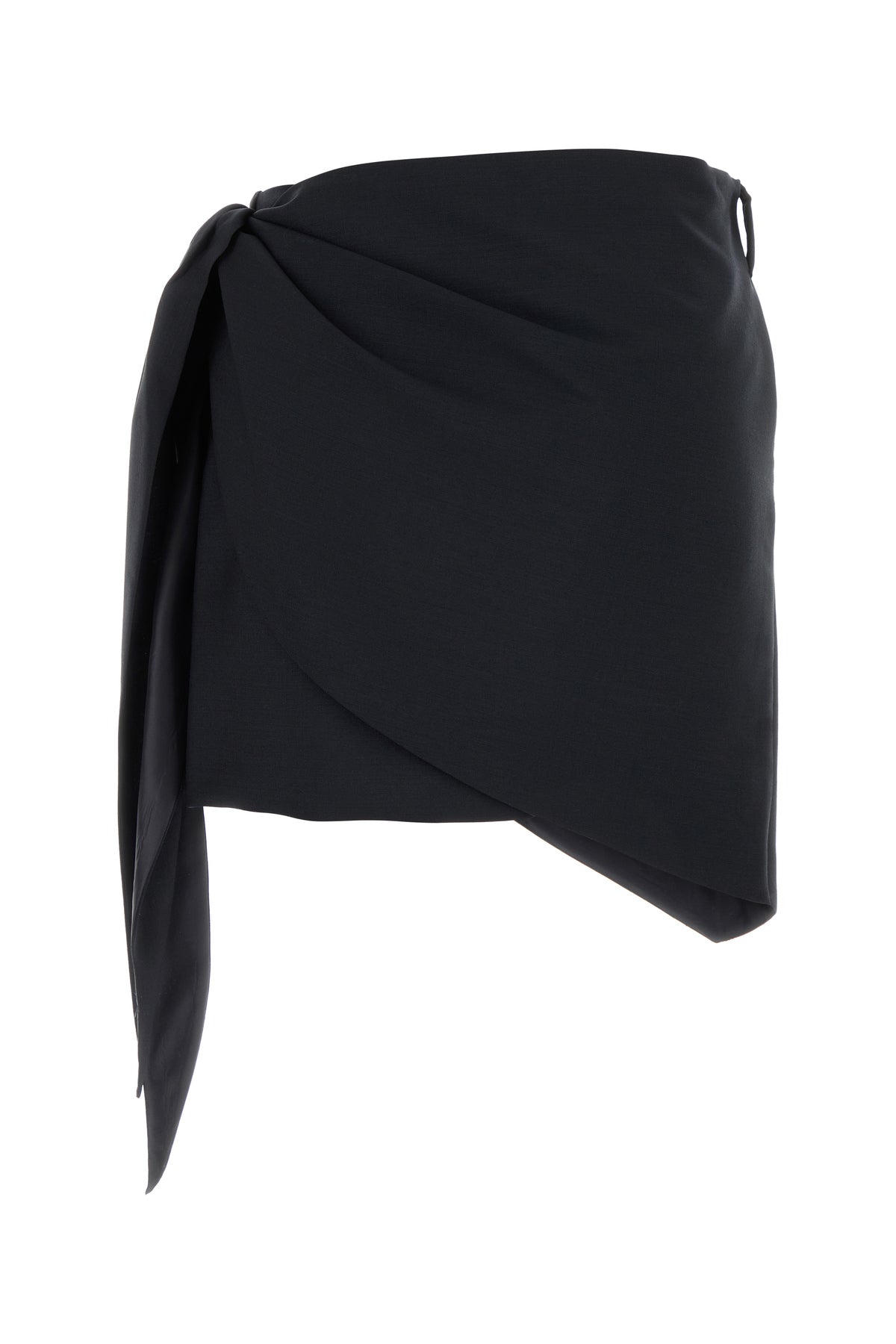 Minigonna realizzata in mohair e lana vergine caratterizzata da fondo asimmetrico.