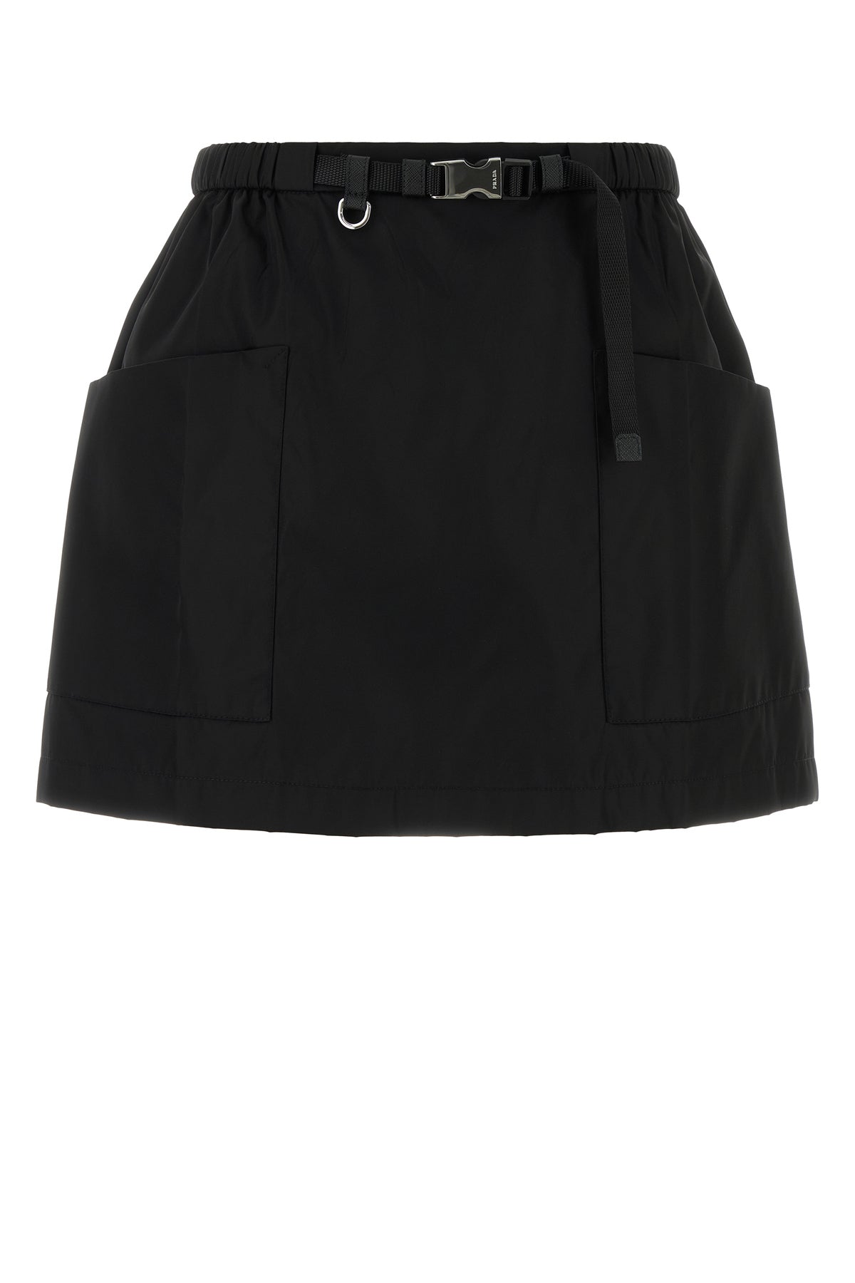 Minigonna realizzata in Re-Nylon arricchita da iconico triangolo in tessuto tonale sul retro.