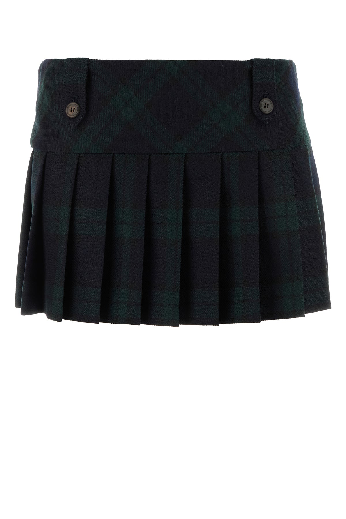 Minigonna plissettata realizzata in twill di pura lana vergine caratterizzata da ricamo a quadri su tutta la superficie.