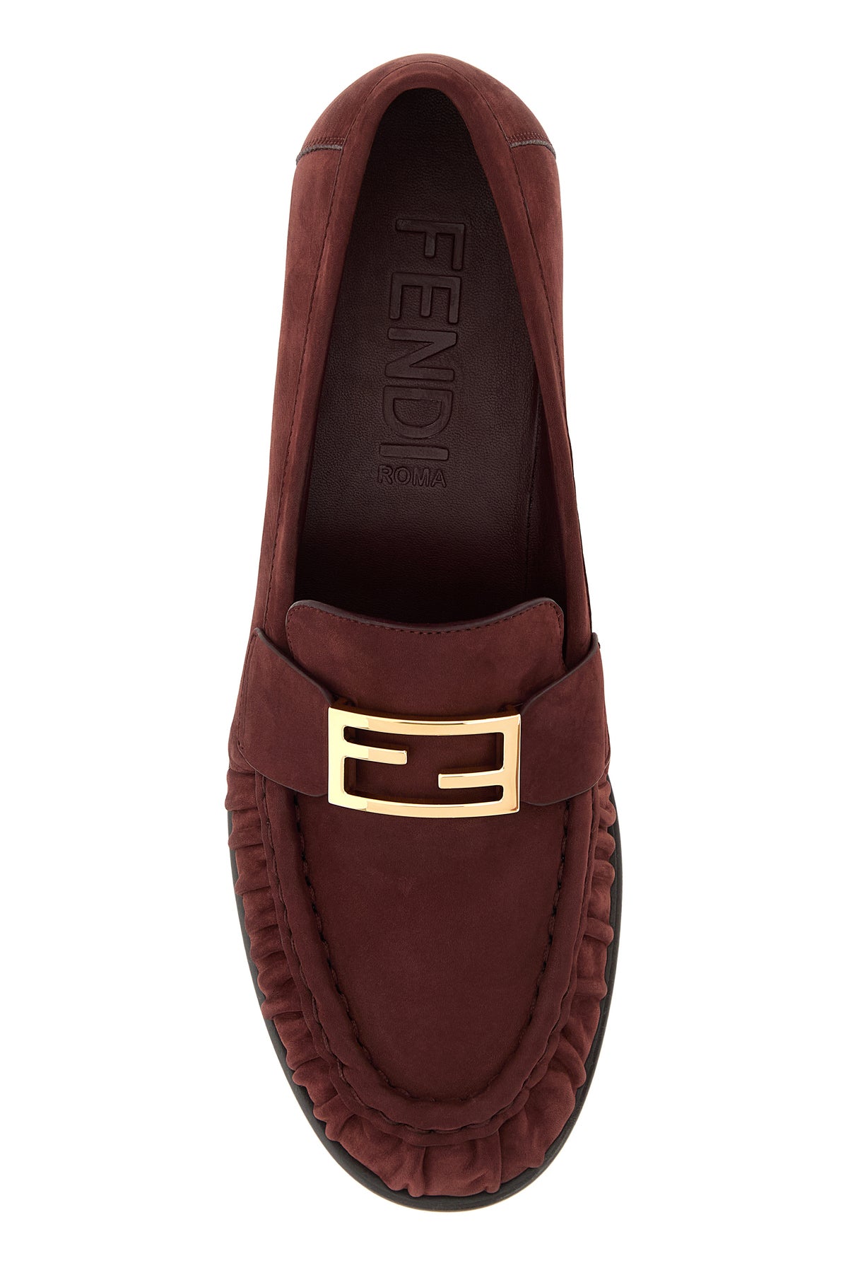 Mocassini realizzati in pelle scamosciata arricchiti da dettaglio metallico FF sulla mascherina.