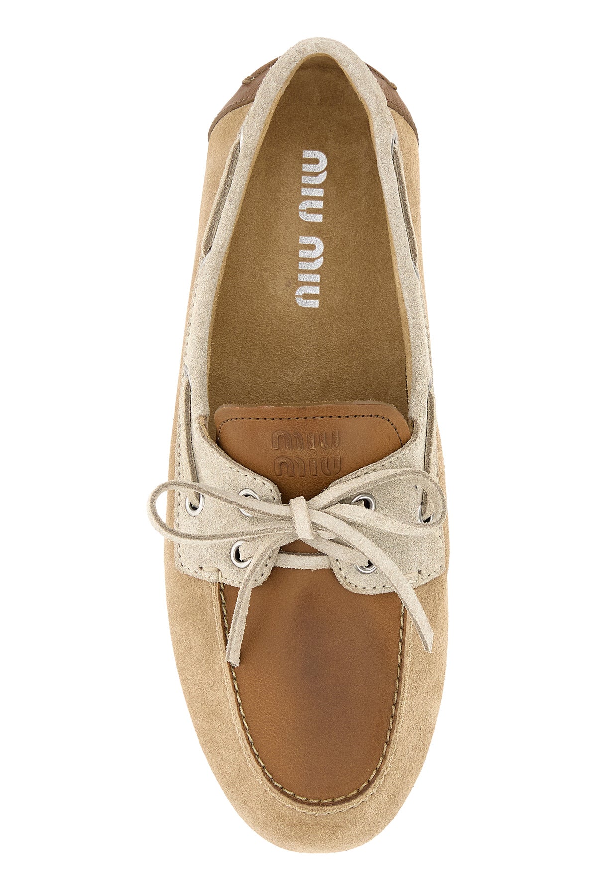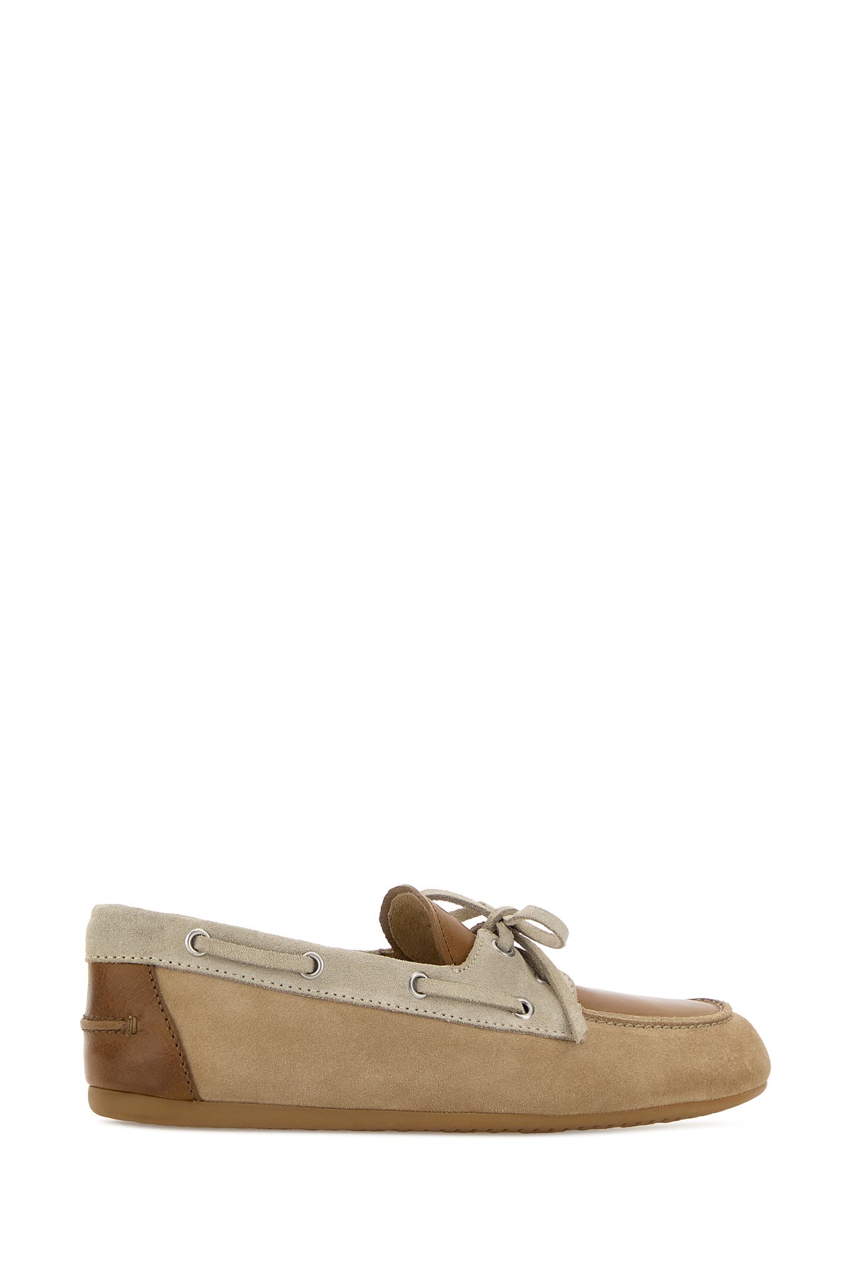 Mocassini realizzati in pelle e pelle scamosciata caratterizzati da logo in rilievo sul collo del piede.