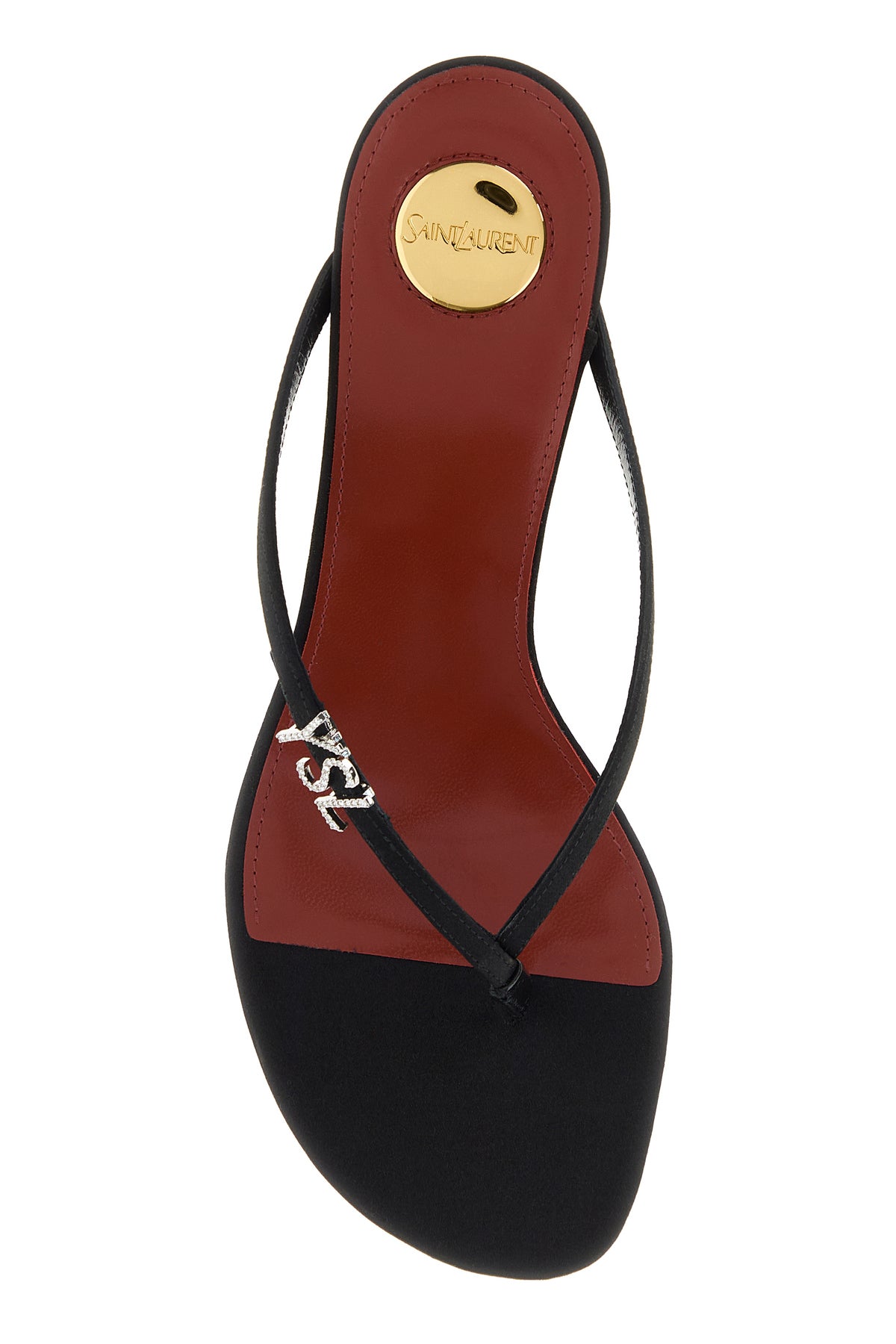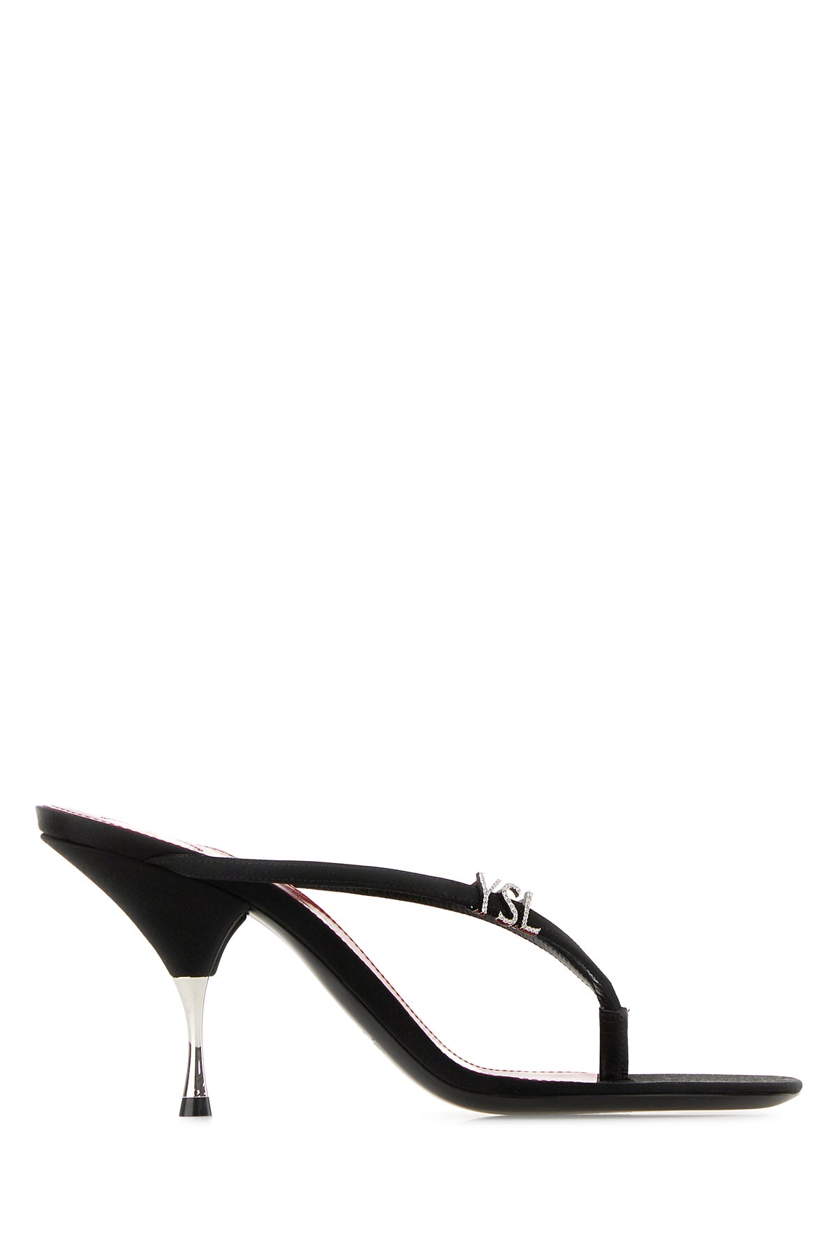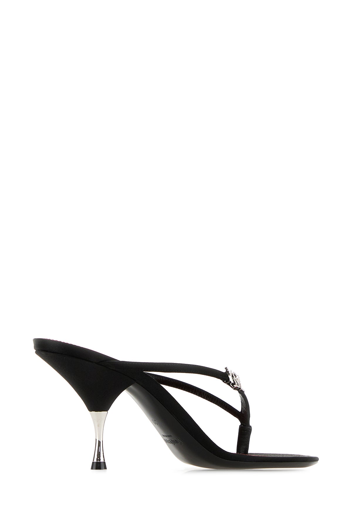 Sabot in crepe arricchite da logo in cristalli sul collo del piede.