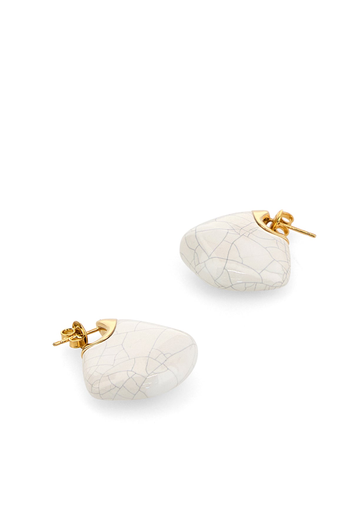 Orecchini realizzati in ceramica ad effetto craquelé e argento sterling placcato oro 18k.