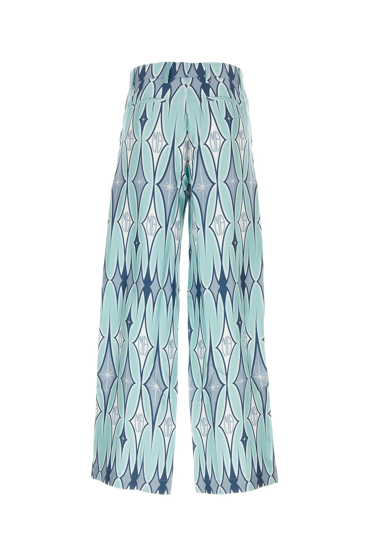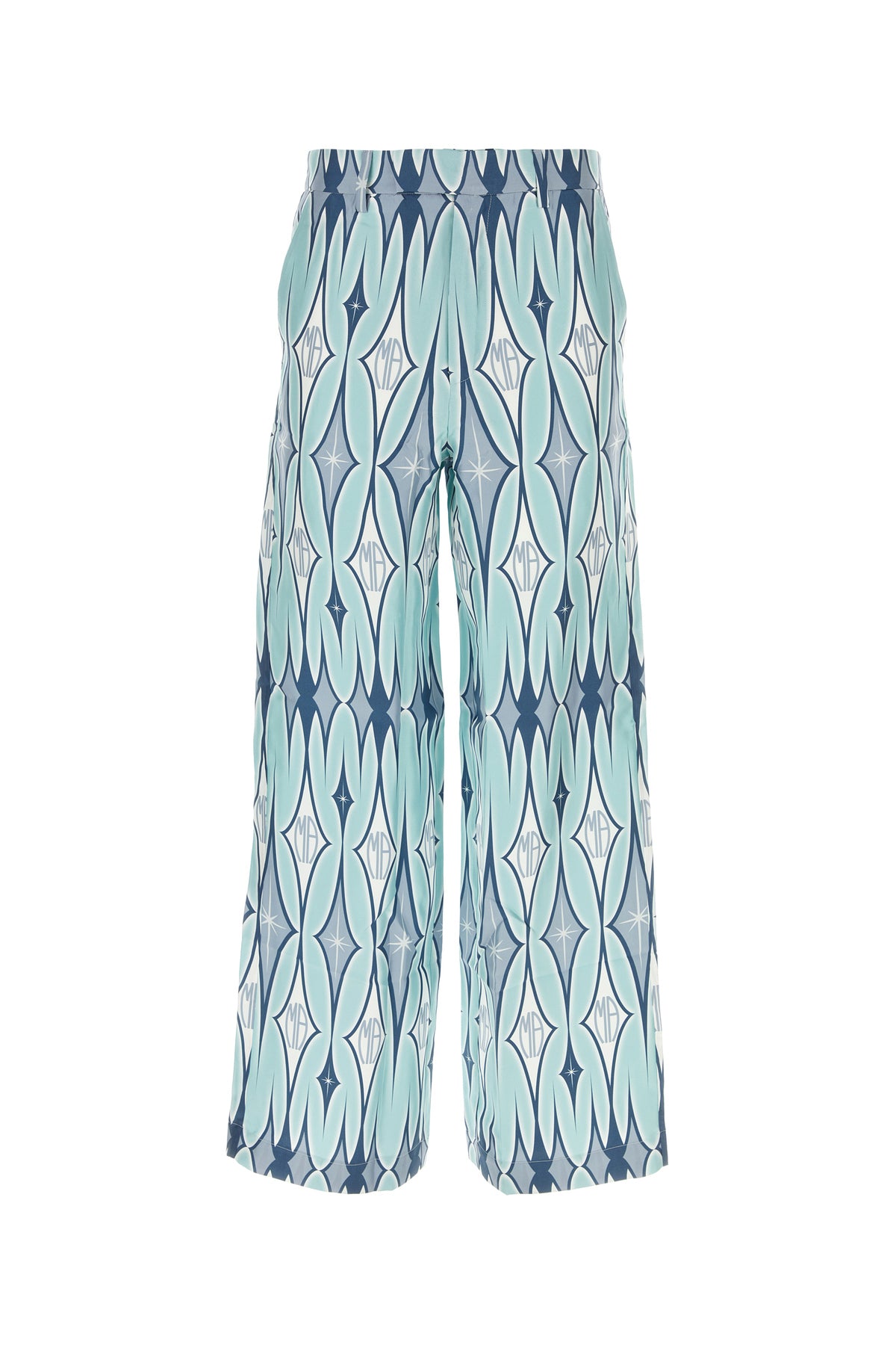 Pantalone realizzato in pura seta caratterizzato da particolare ricamo su tutta la superficie.
