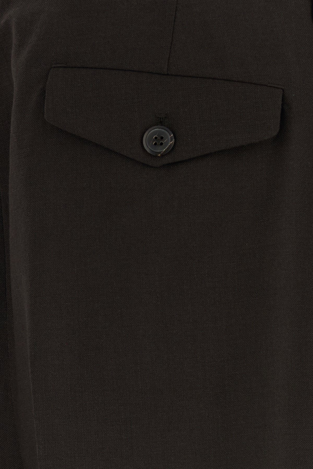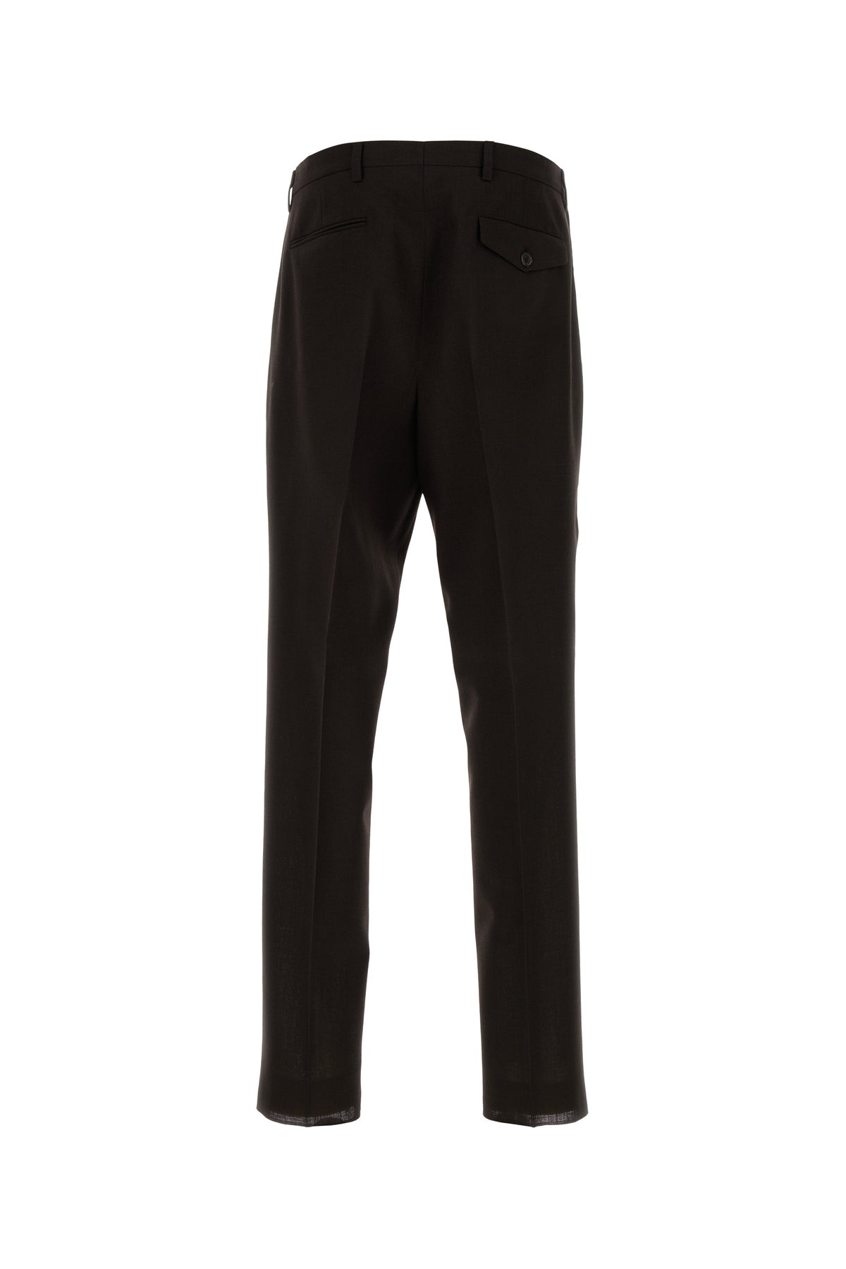 Pantalone realizzato in pura lana vergine caratterizzato da pieghe centrali striate.