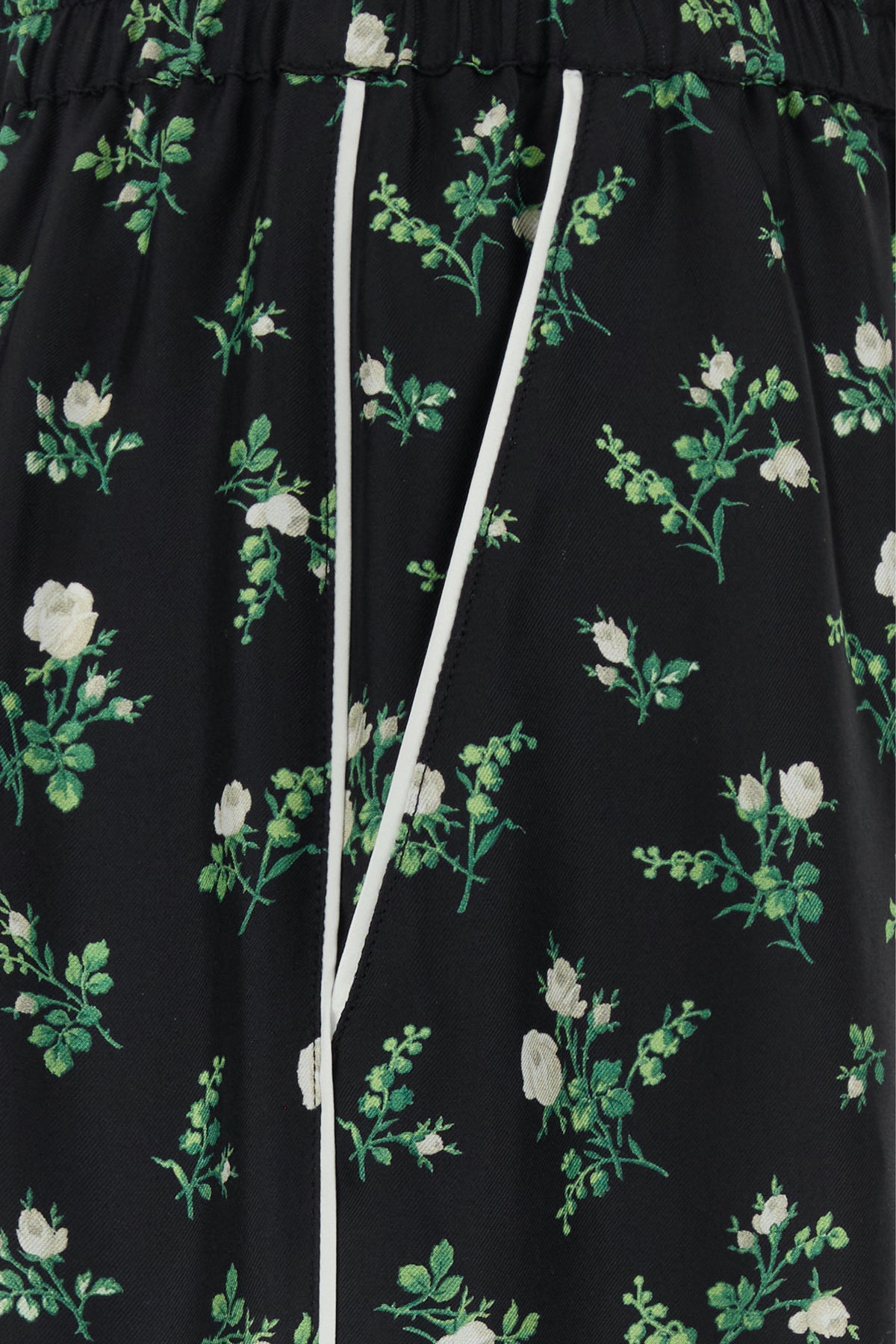 Pantalone realizzato in raso di pura seta caratterizzato da stampa floreale su tutta la superficie.
