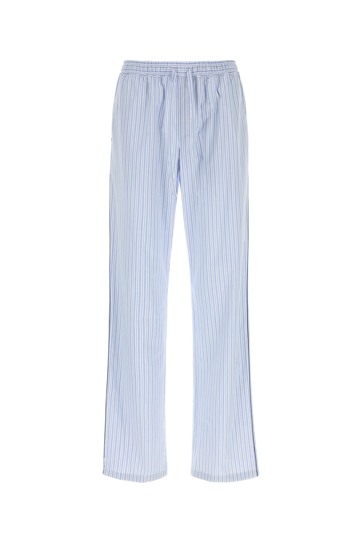 Pantalone pigiama realizzato in popeline di cotone e seta caratterizzato da ricamo a righe su tutta la superficie arricchito da etichetta logata sul retro.