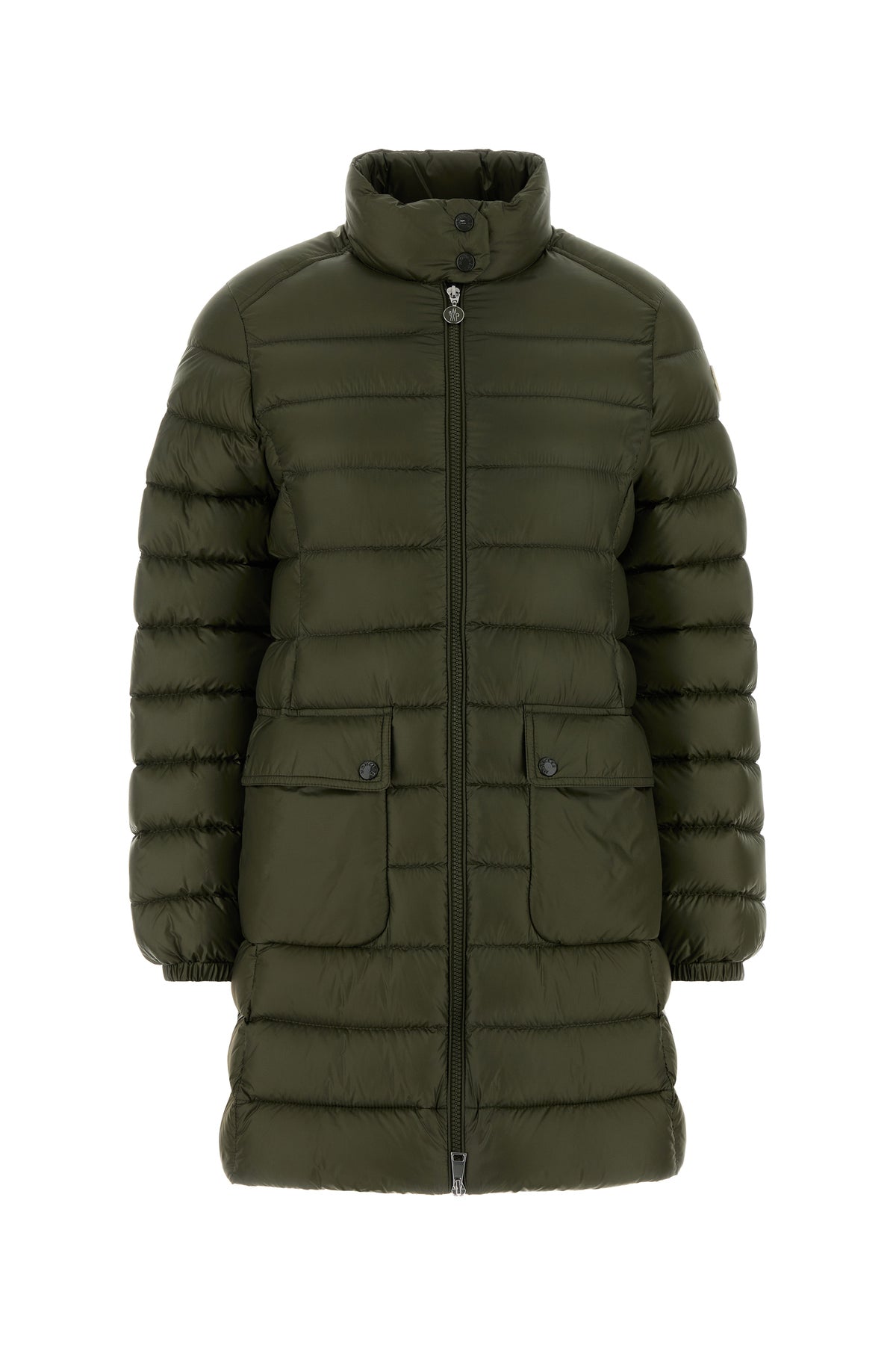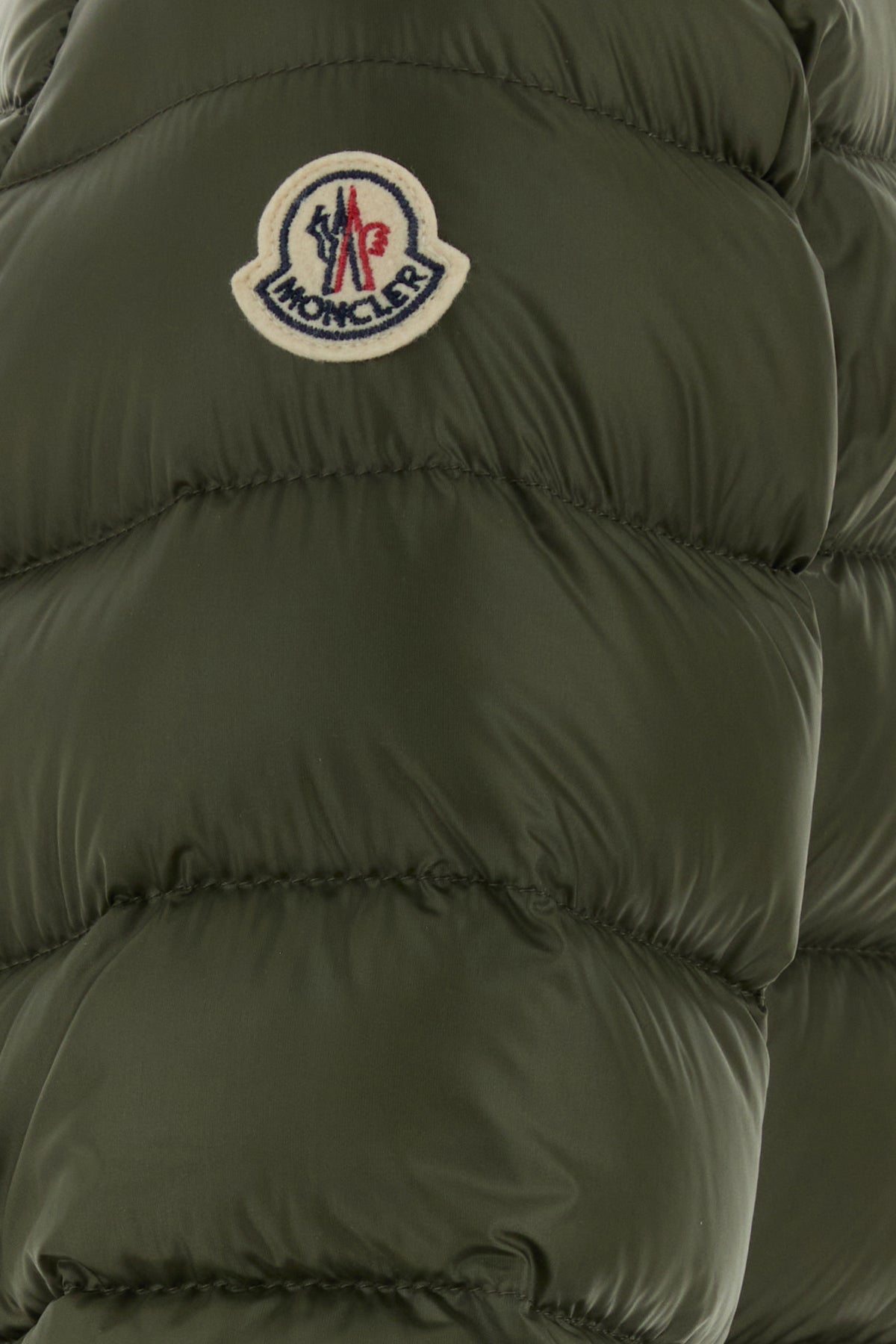Piumino realizzato in nylon trapuntato arricchito da applicazione logata sulla manica.